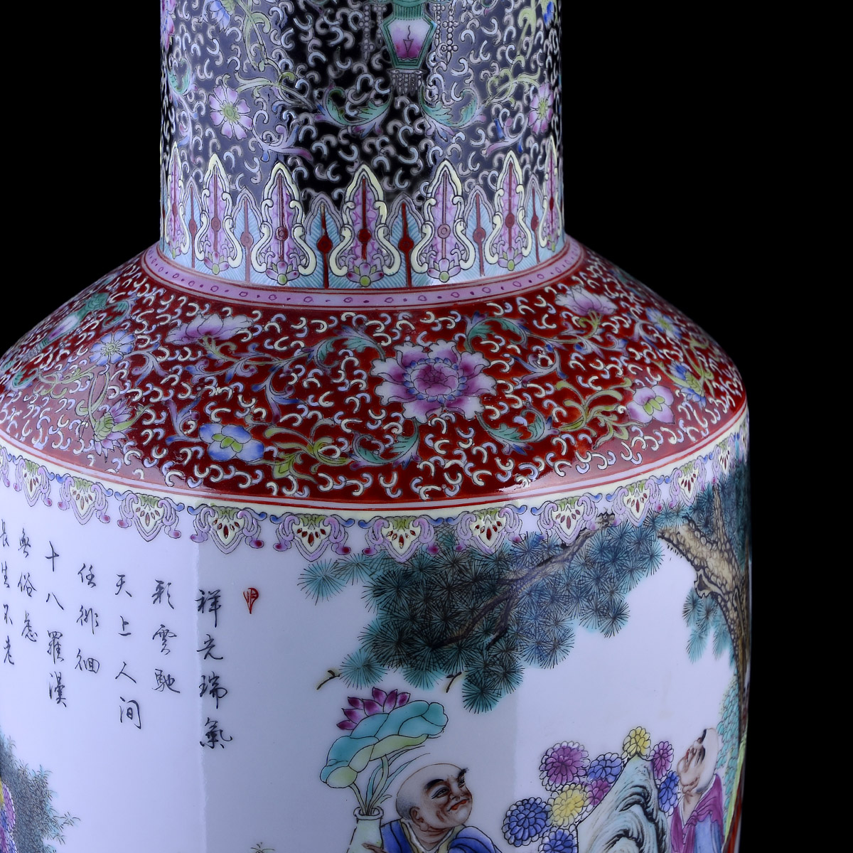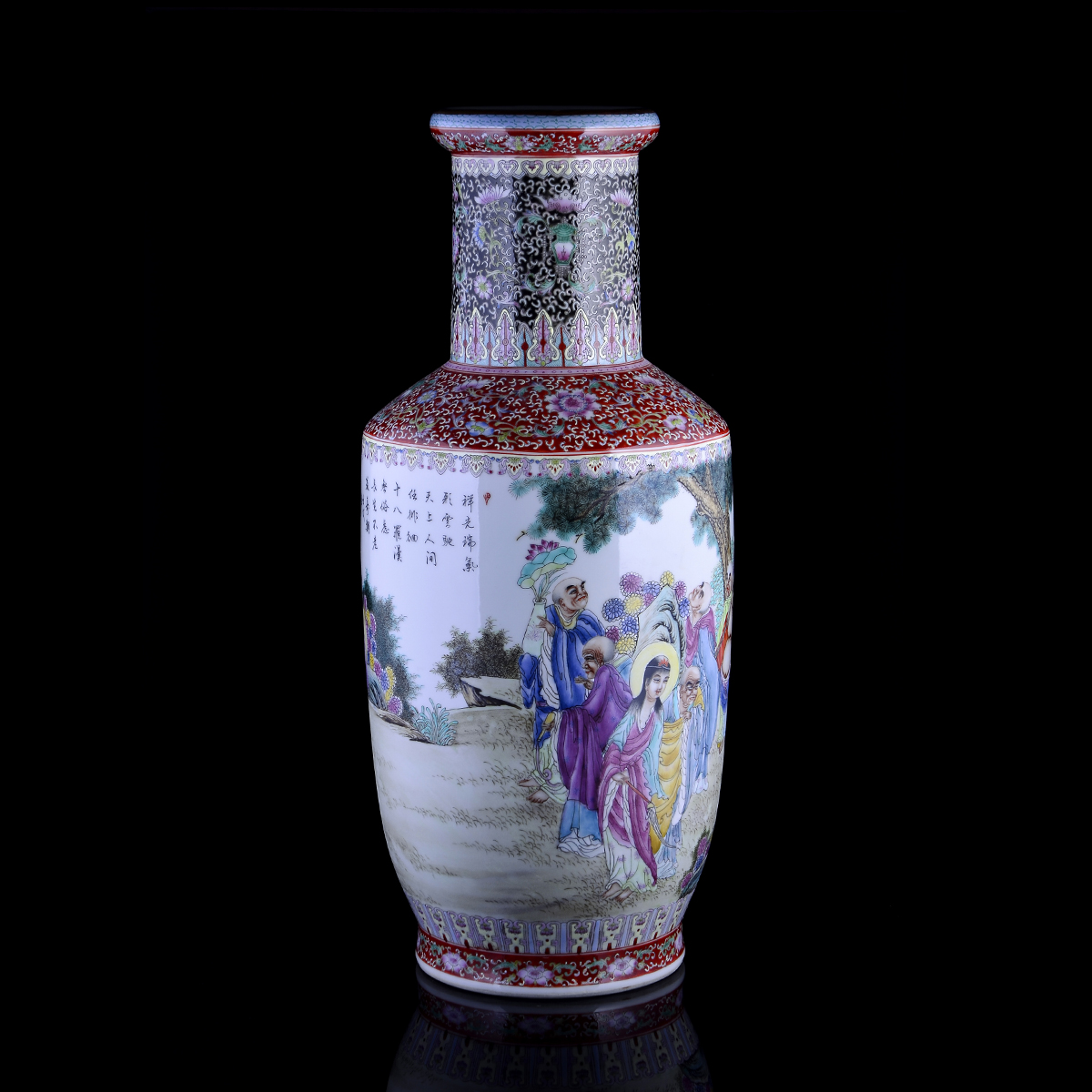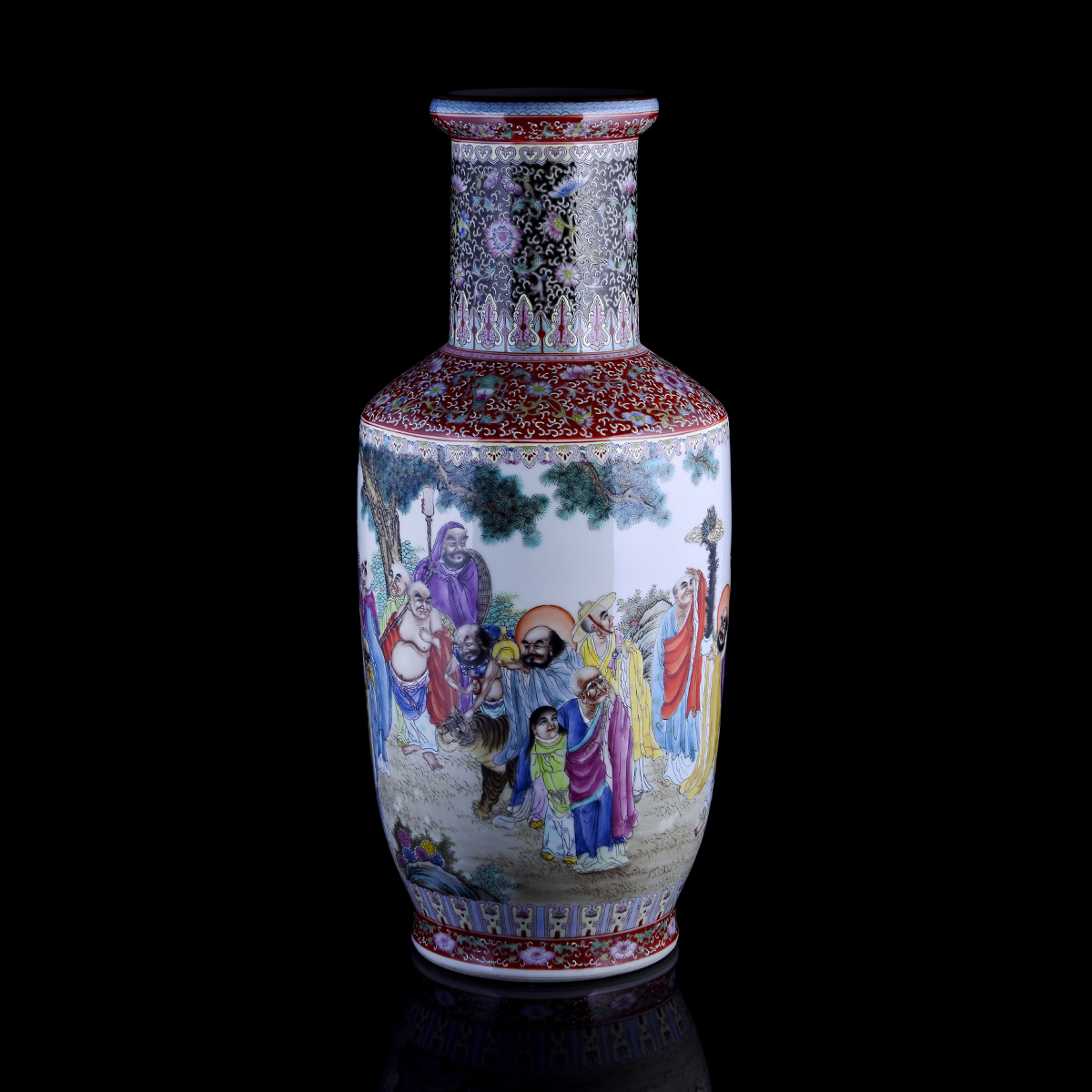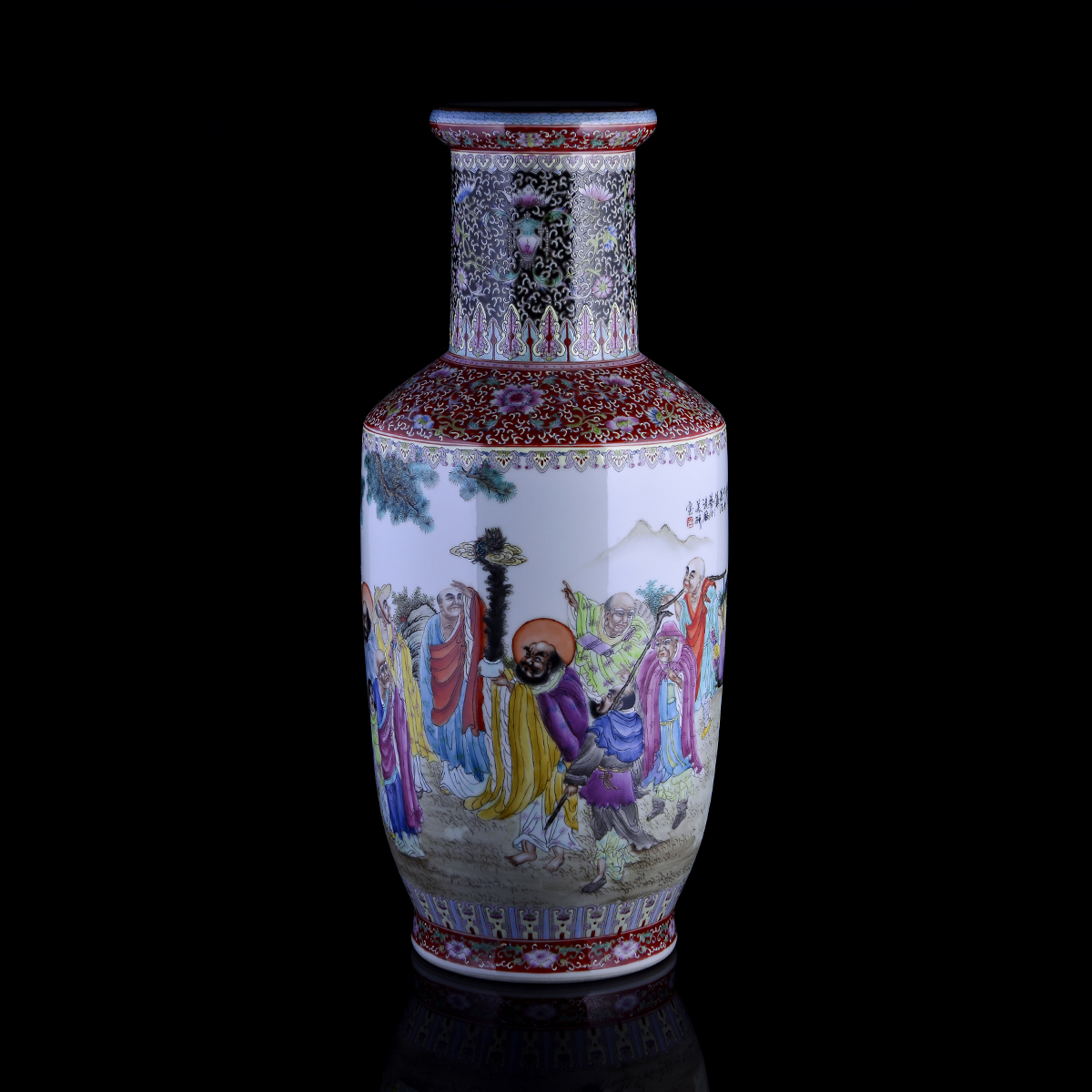 C54 仿古《粉彩十八罗汉棒槌瓶》