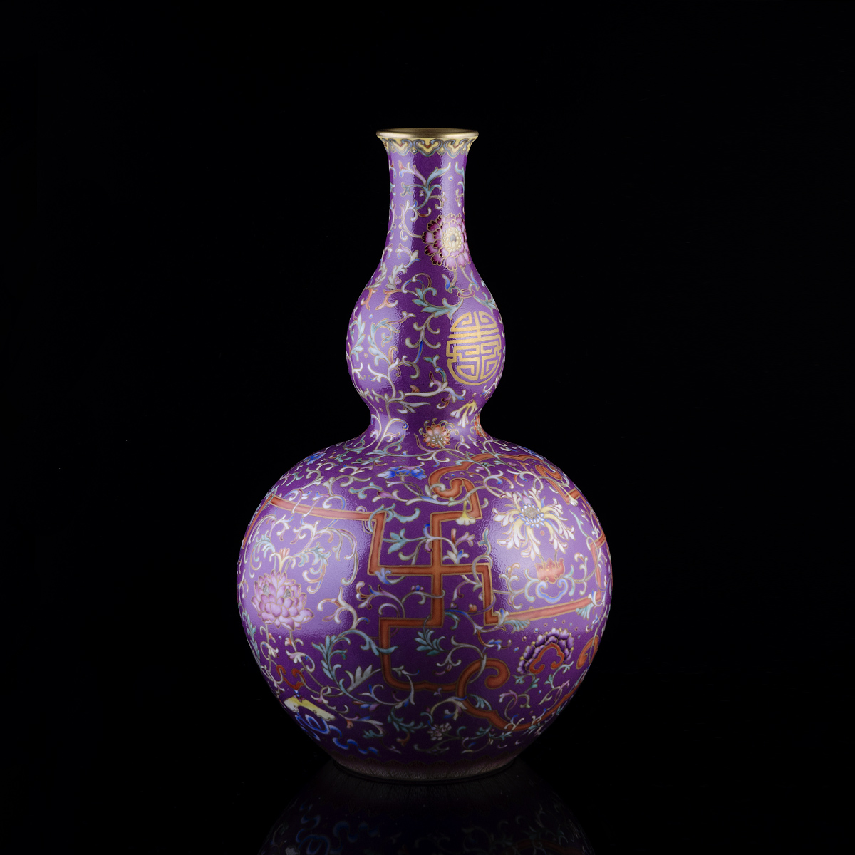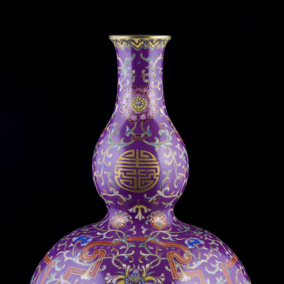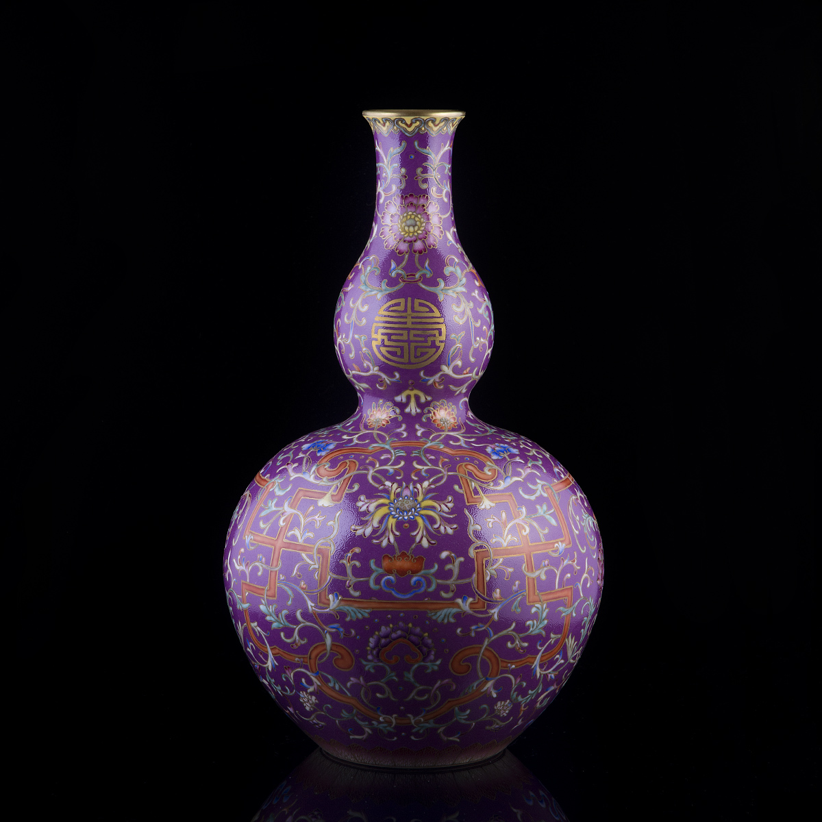 C69 仿古《乾隆茄皮紫扒花百寿葫芦瓶》