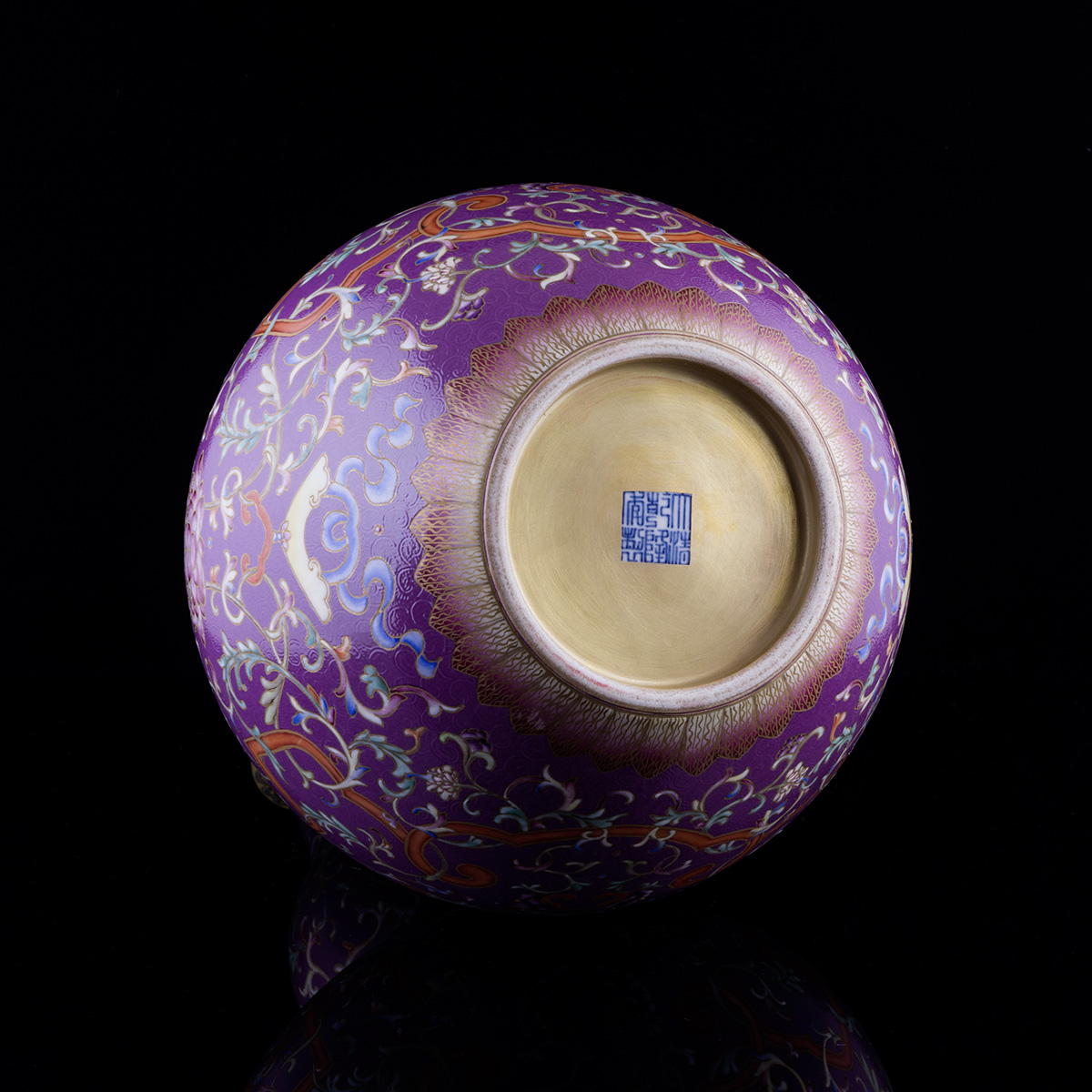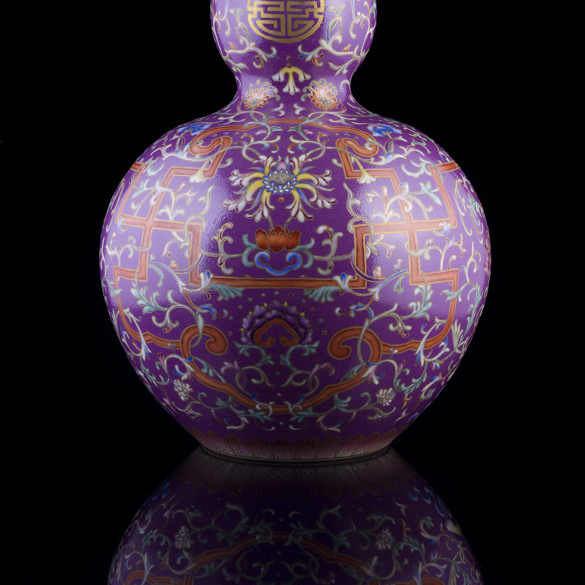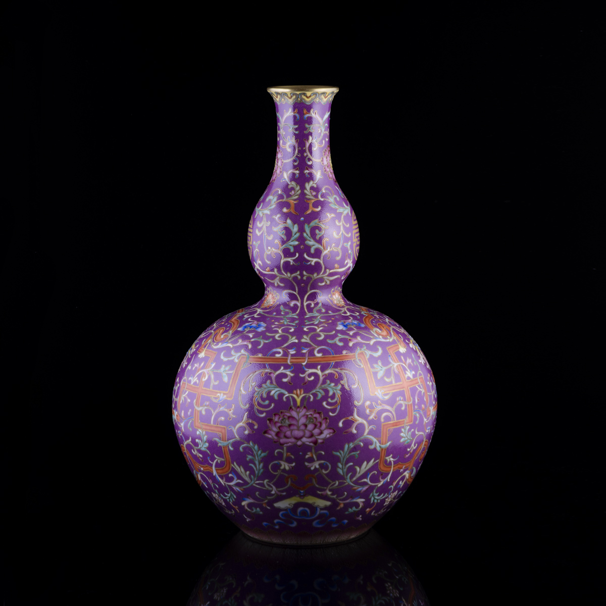 C69 仿古《乾隆茄皮紫扒花百寿葫芦瓶》
