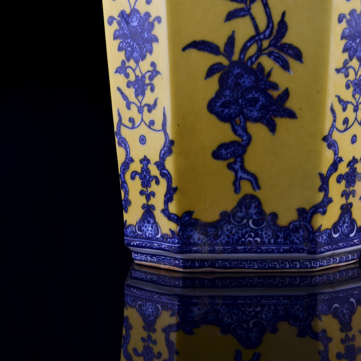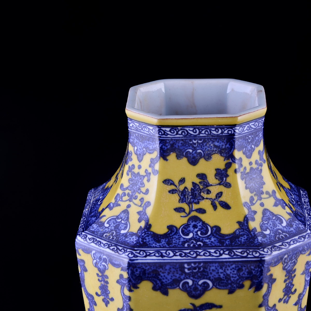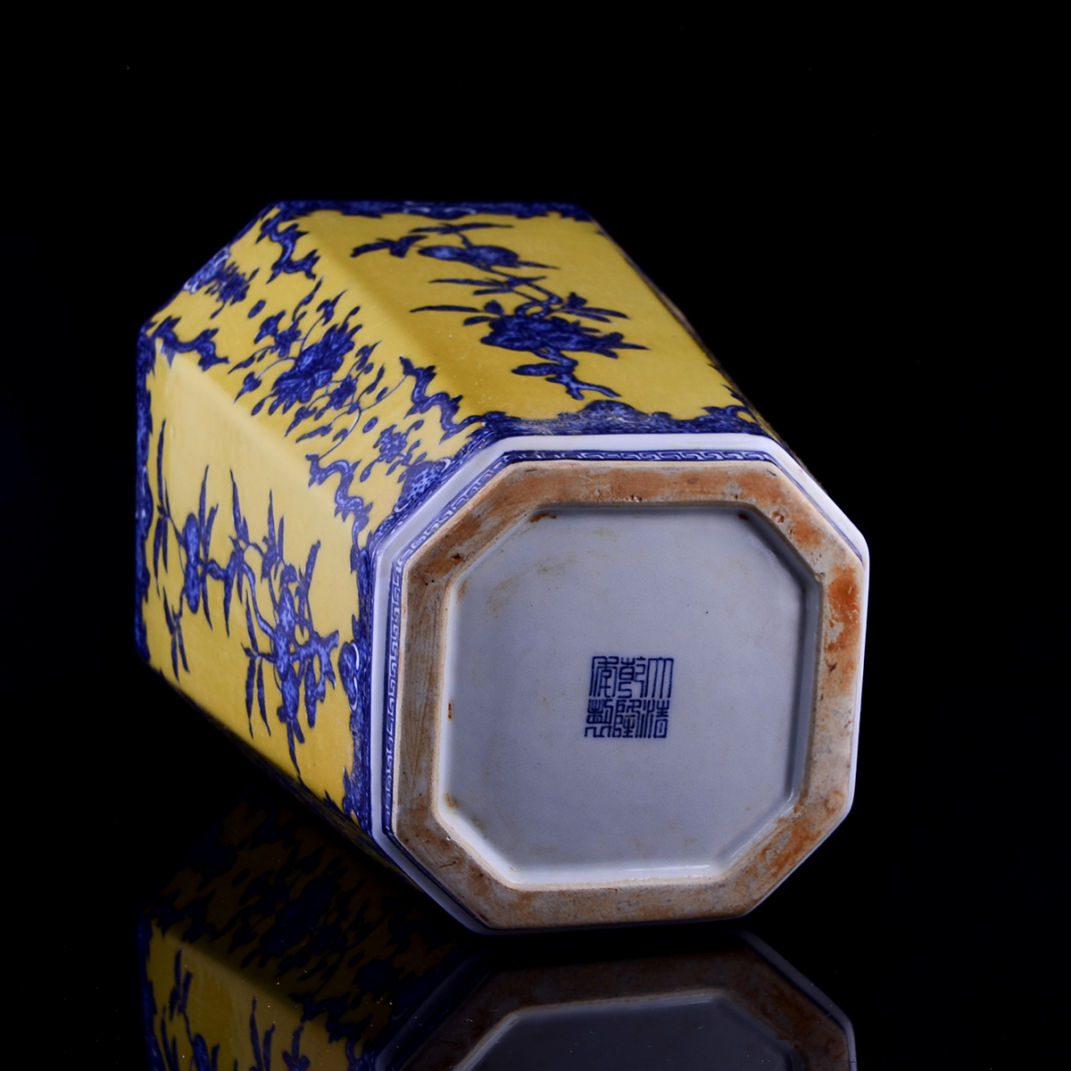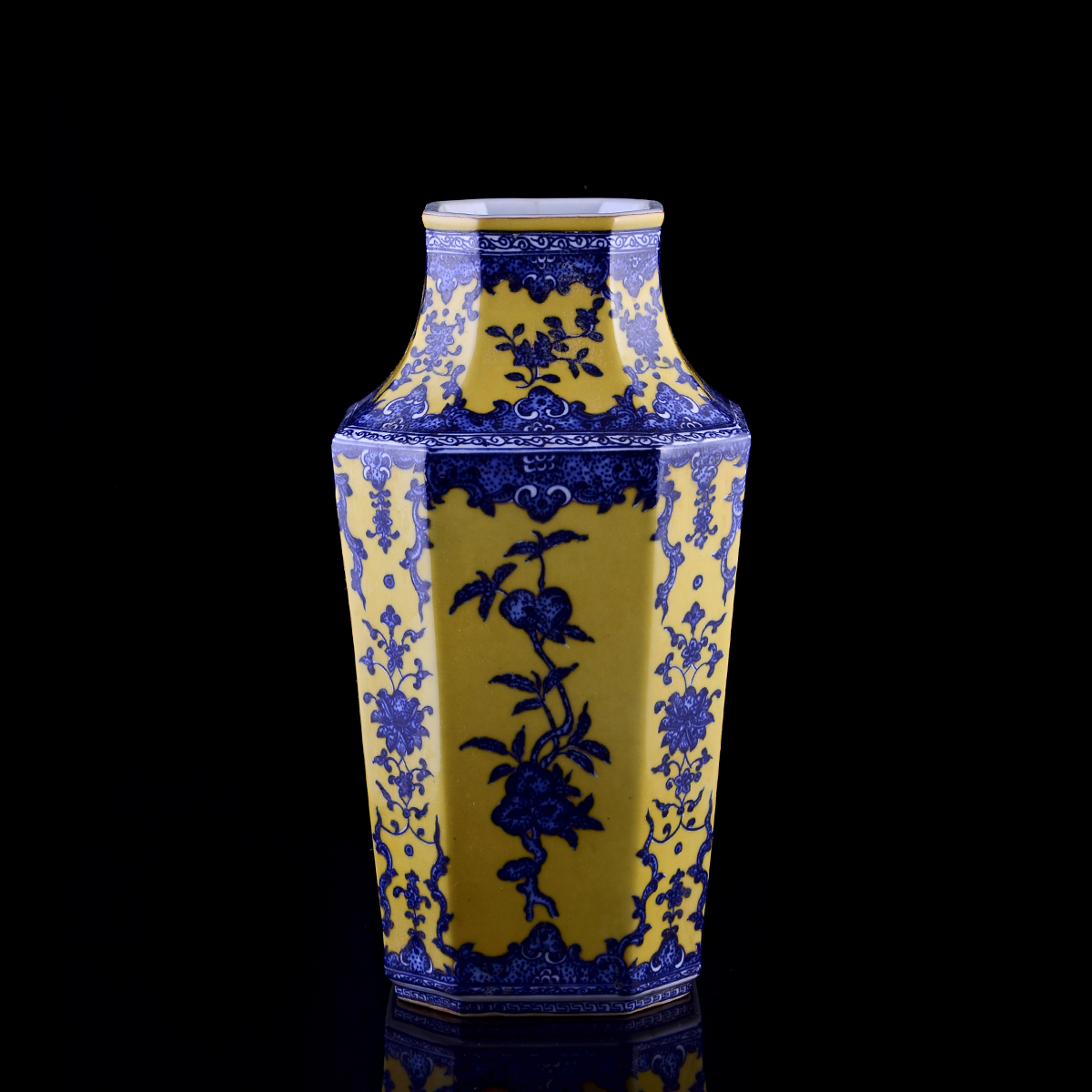 C88 仿古乾隆《黄地青花寿桃四方瓶2个》