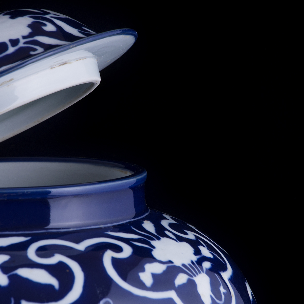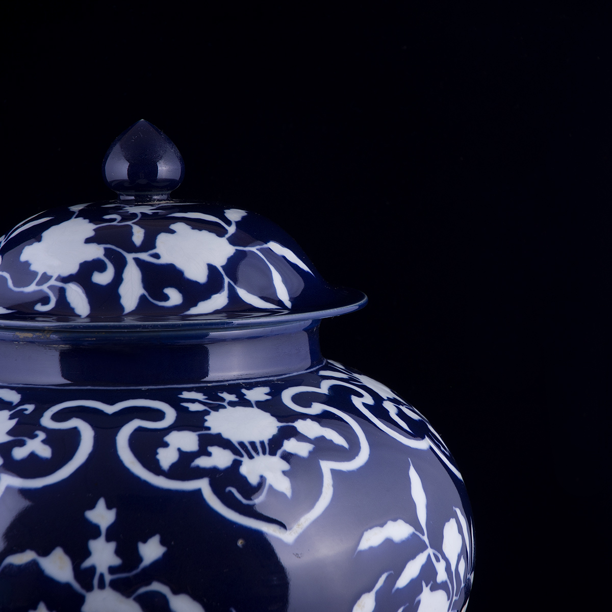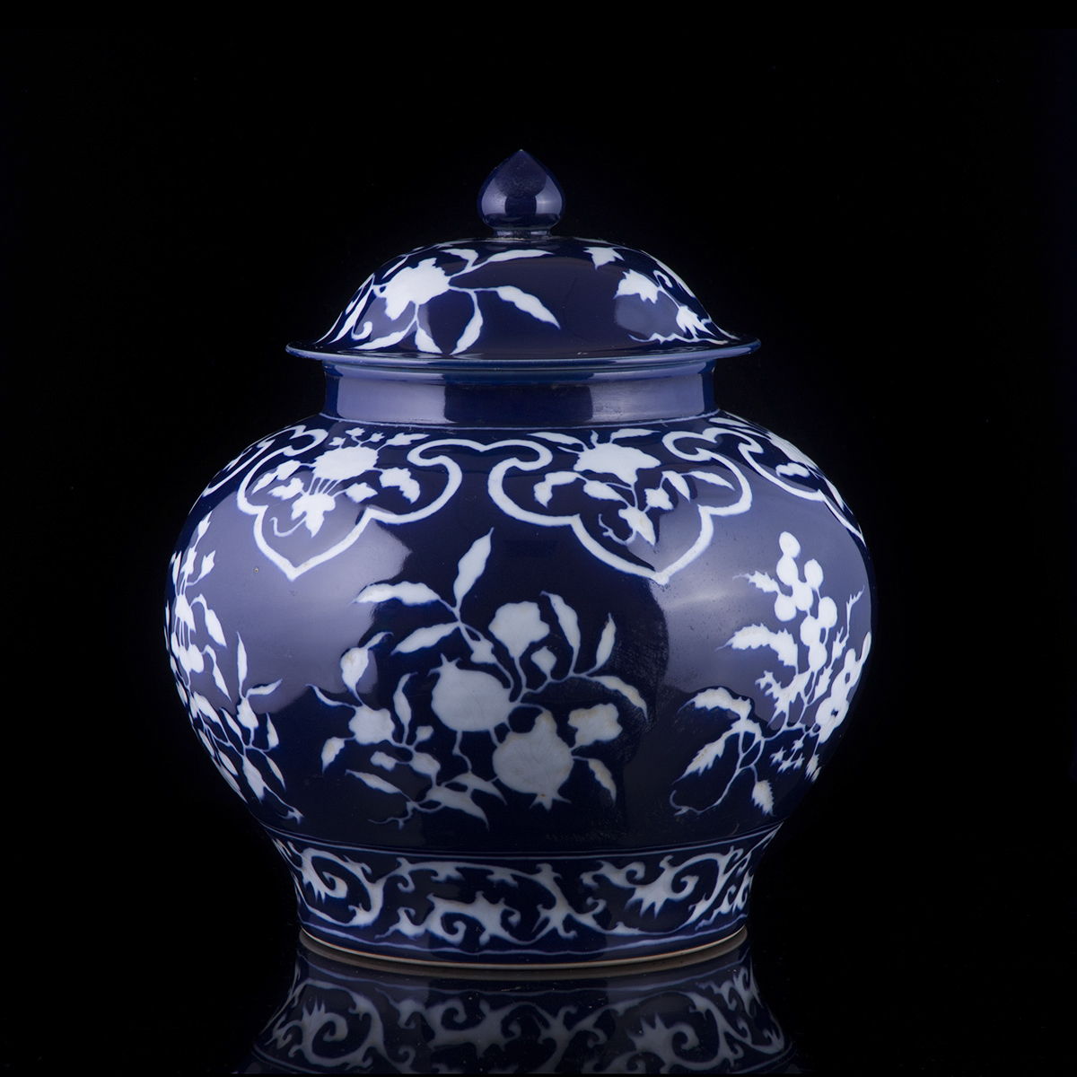 C90 仿元代《蓝卵白雕荷叶盖罐》