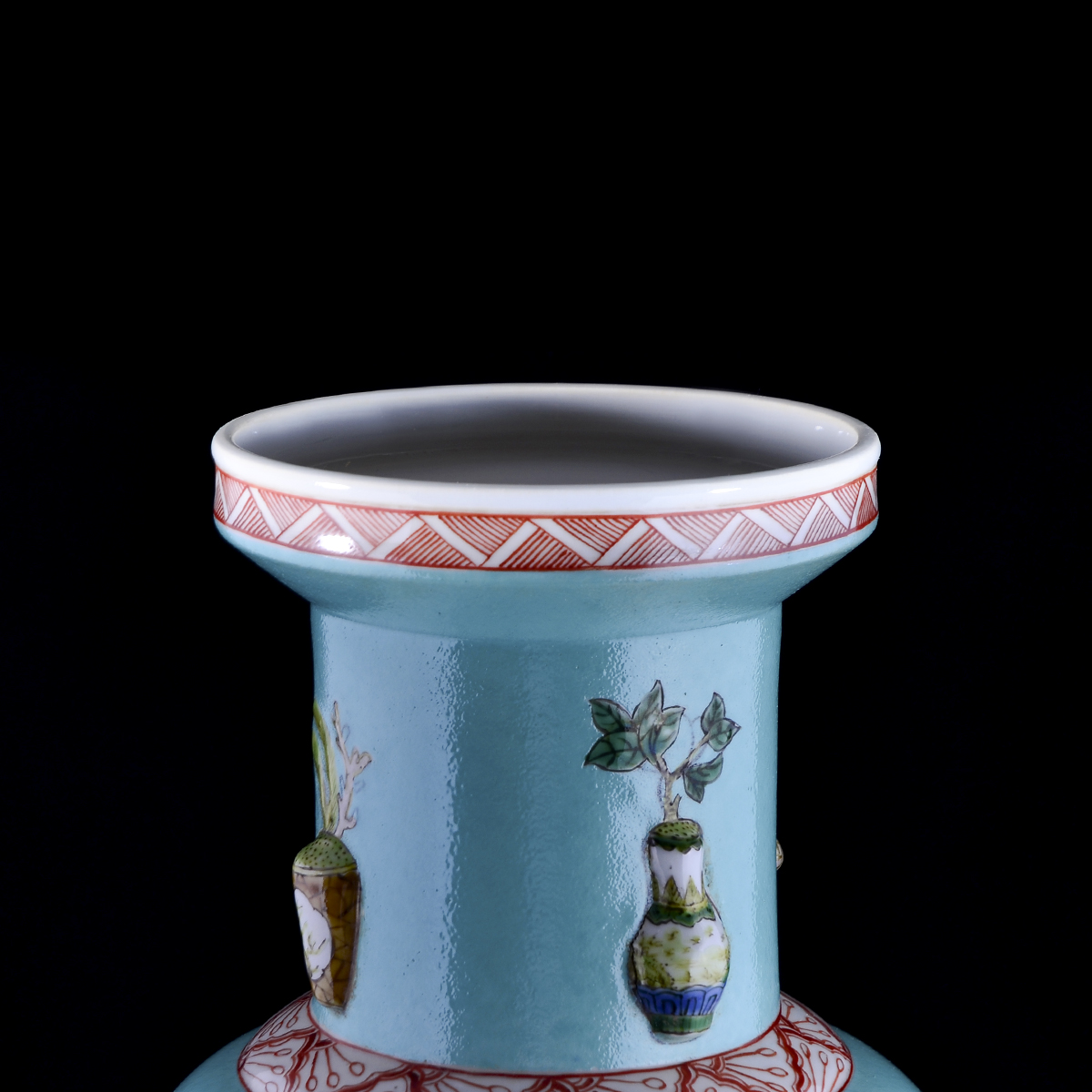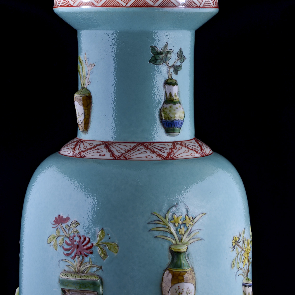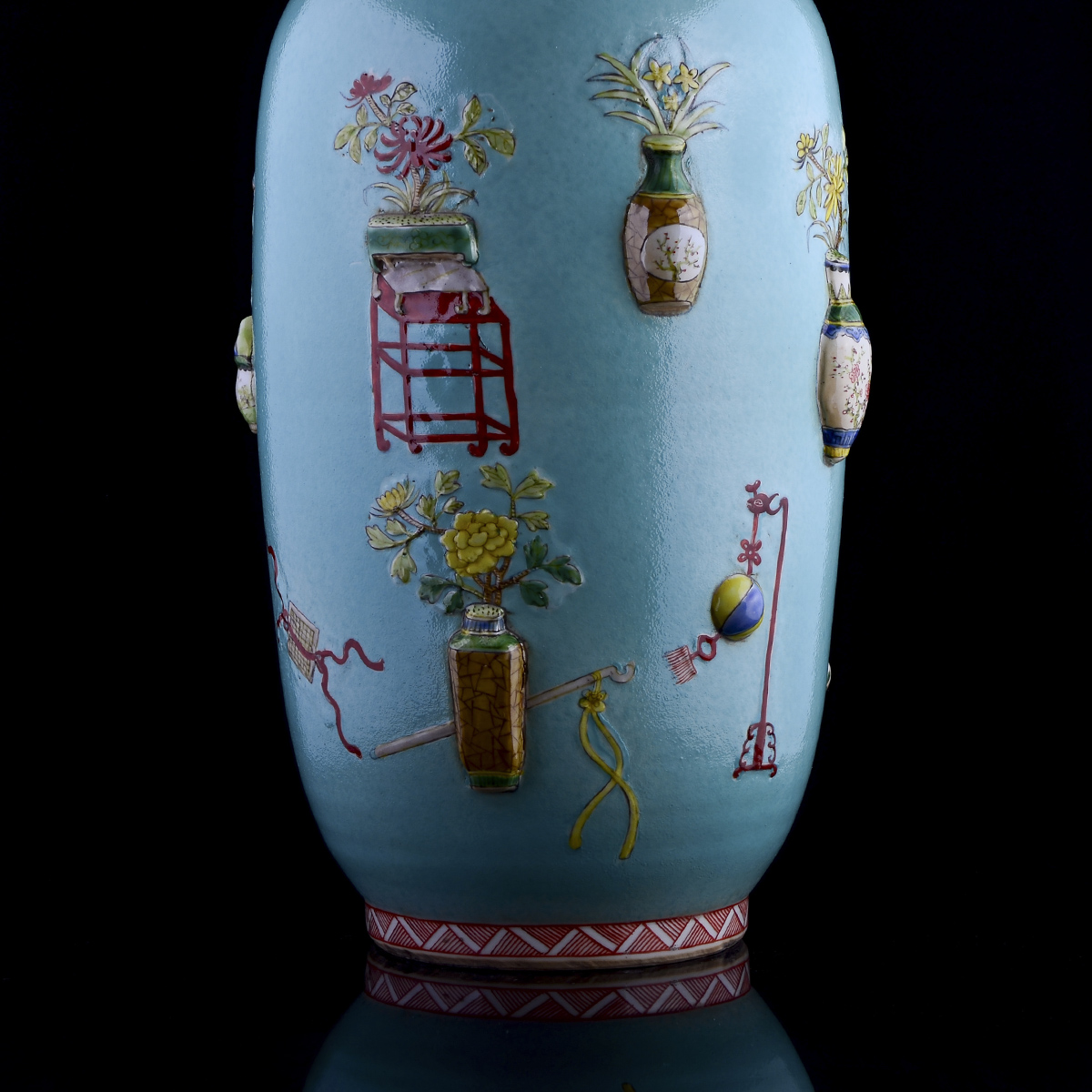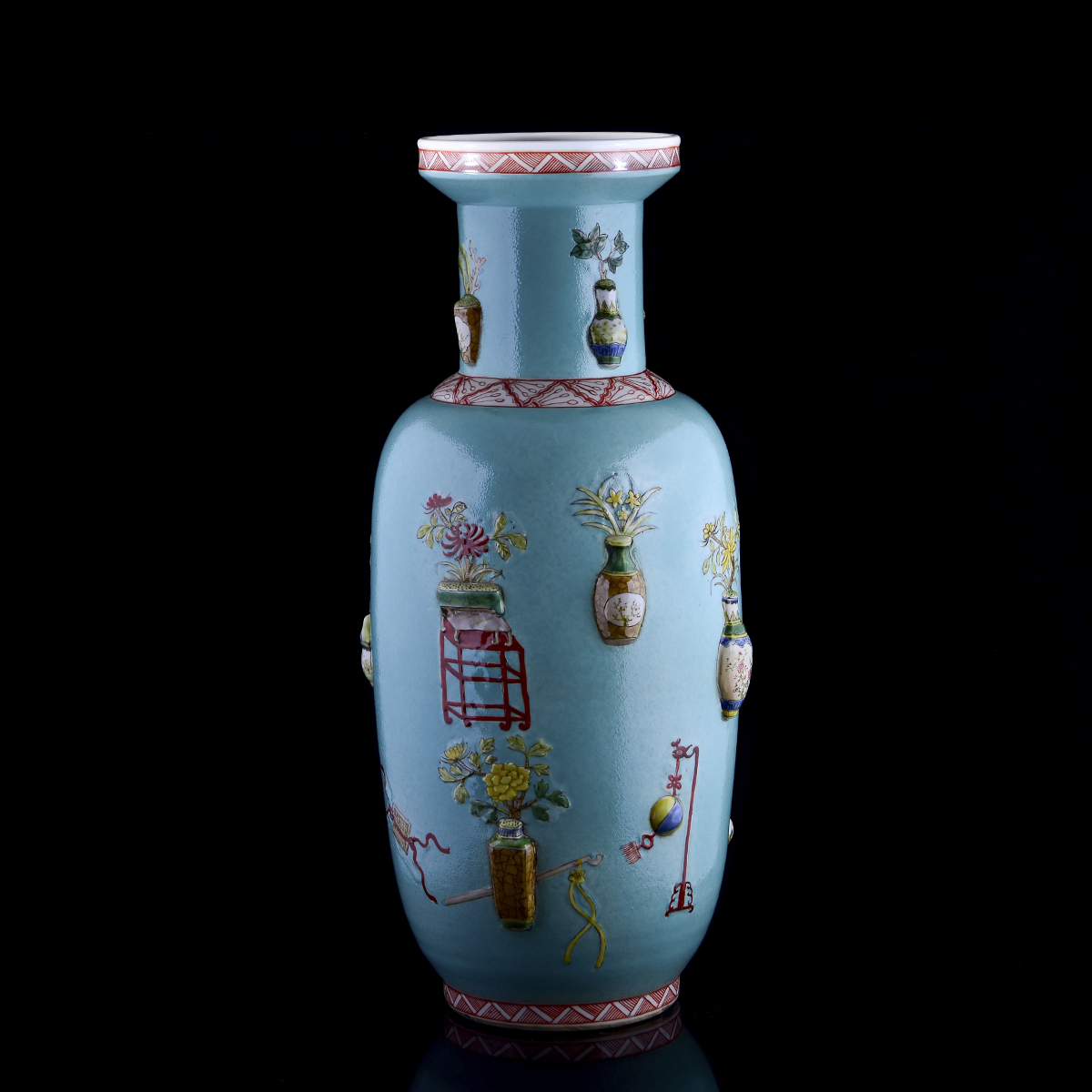 C93 民国《绿地浮雕博古瓶1个》