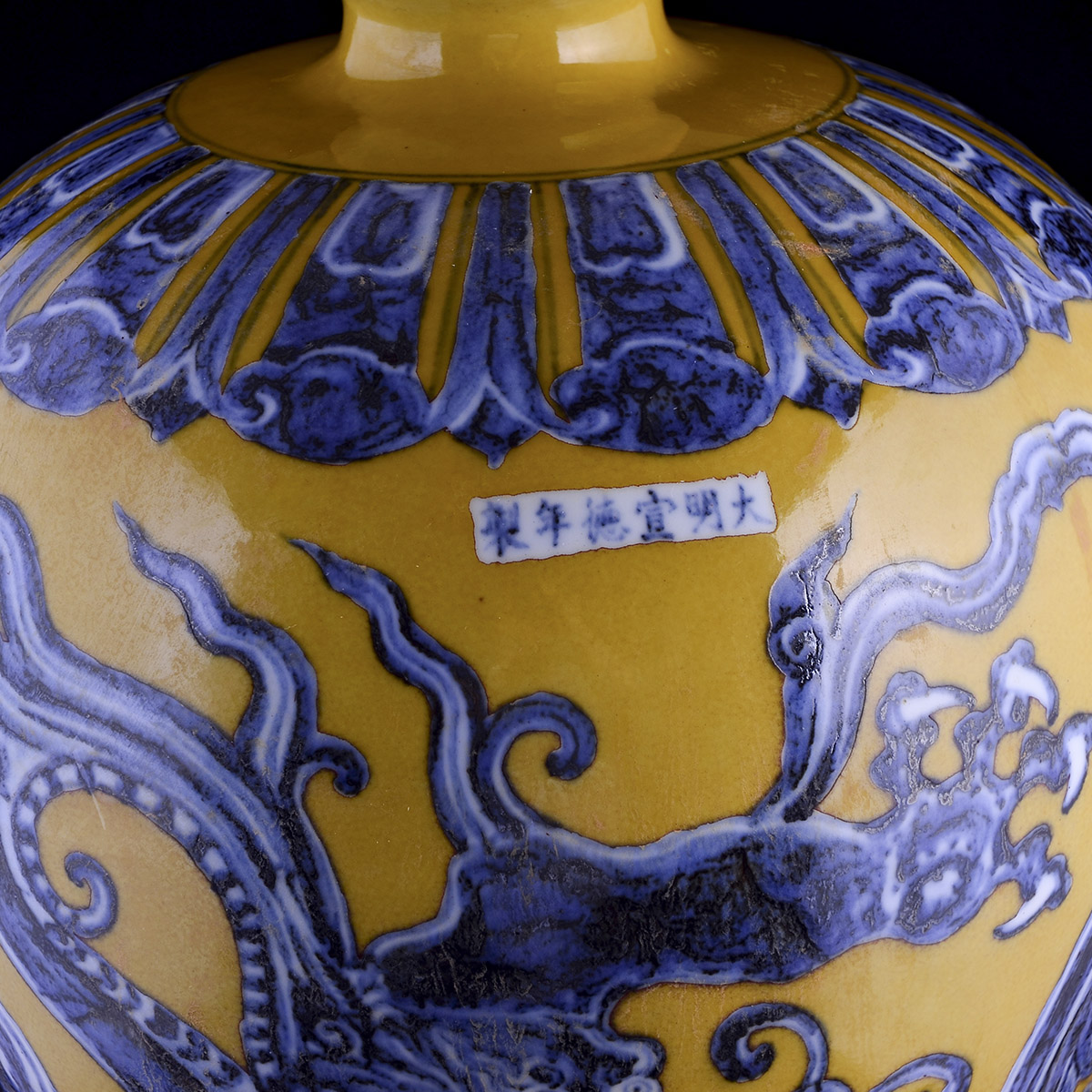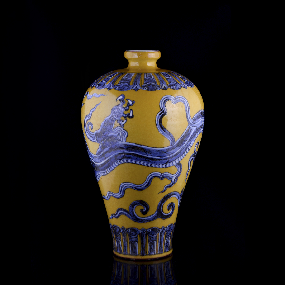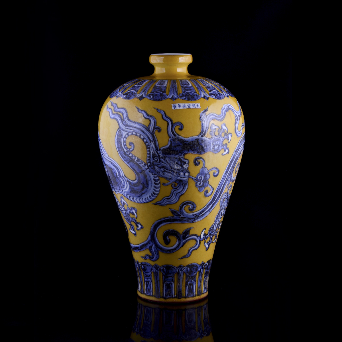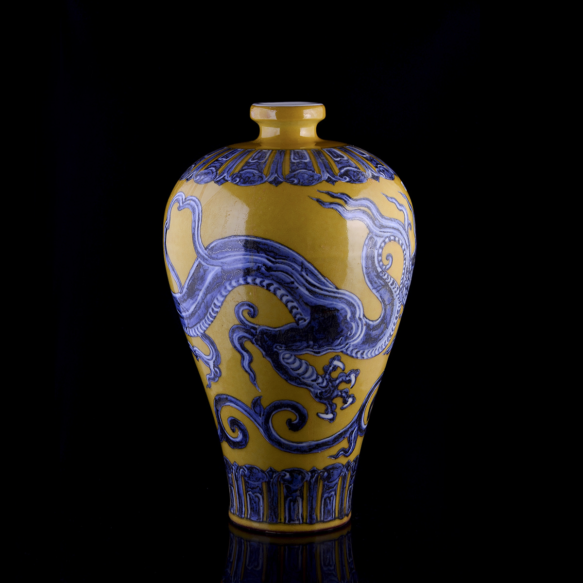 C99 仿古宣德《黄地青花龙纹梅瓶》