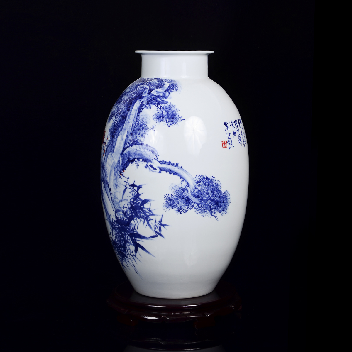 作品材质:手工拉坯高白胎,手绘釉下青花装饰。