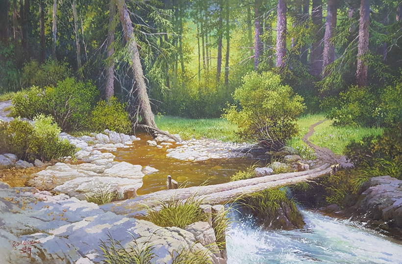 DQYCX47 安秀《幽林小径》朝鲜一级画家
