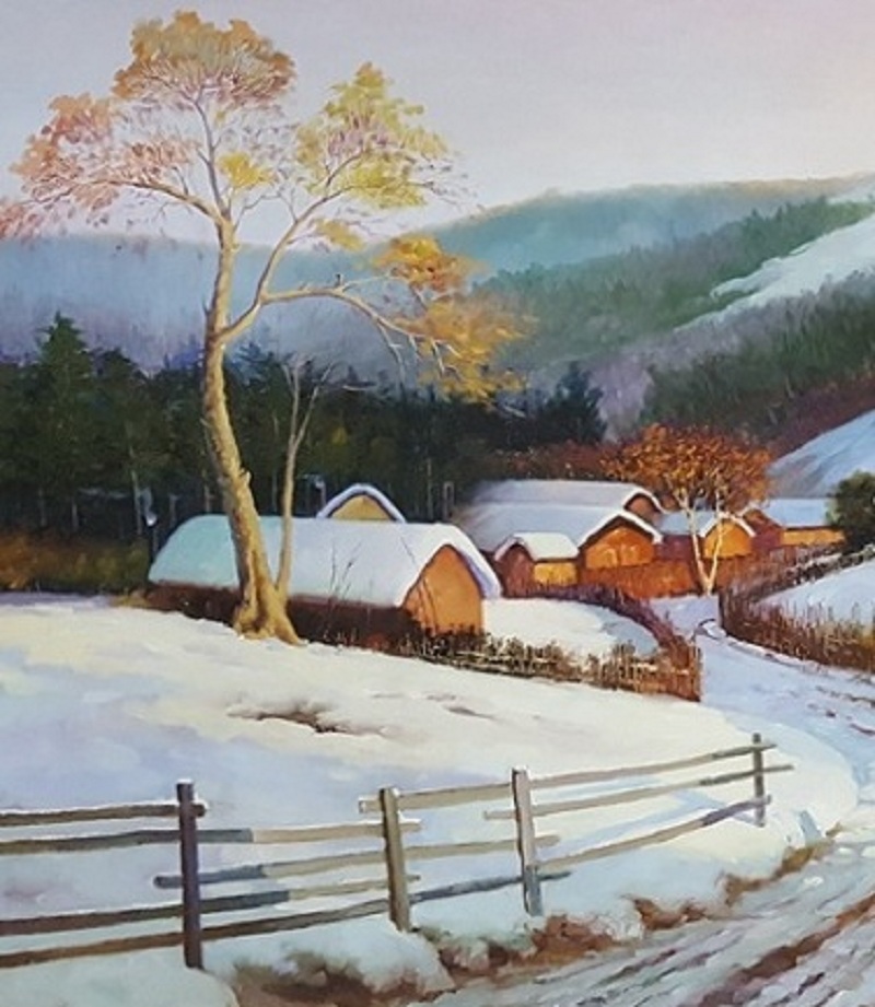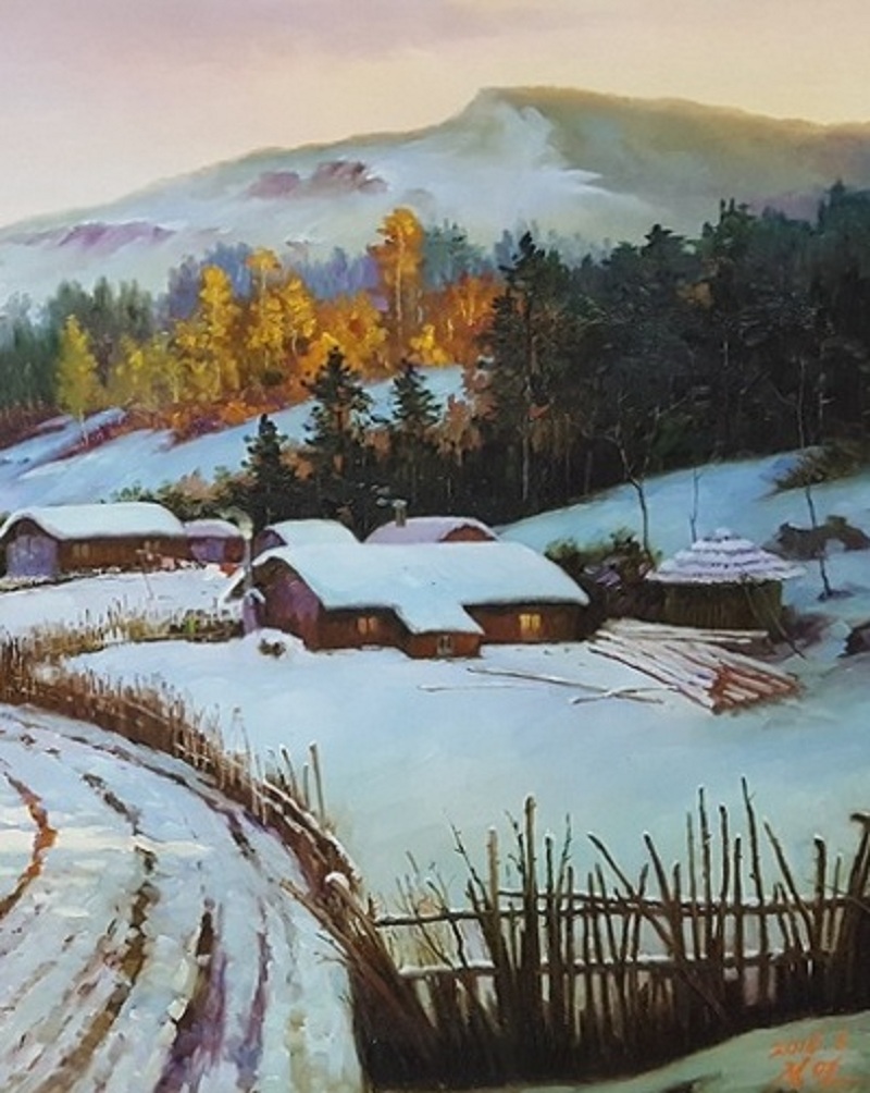 郑岩 一级画家 1977年出生于朝鲜平壤市,2001年毕业于平壤美术大学,现任白虎美术创作社画家。代表作《峡谷》。