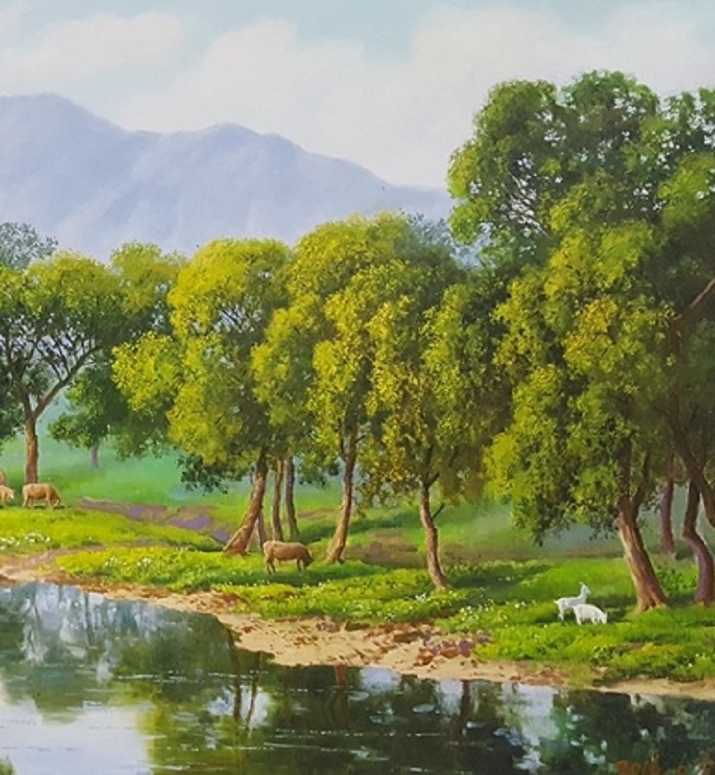 李俊赫 一级画家 1966年出生于朝鲜平壤市,1992年毕业于平壤美术大学,现任铁道美术创作社画家。代表作《大海》