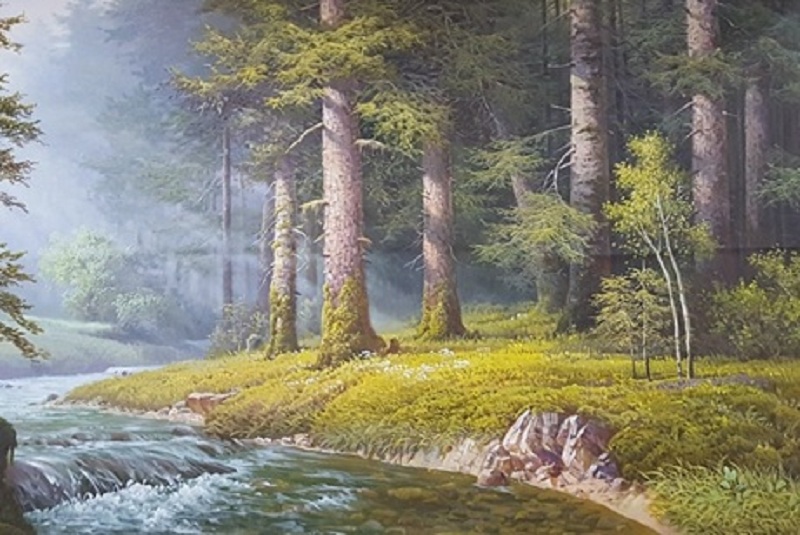 DQYCX70 功勋艺术家 金正英《山村溪水》100*240cm