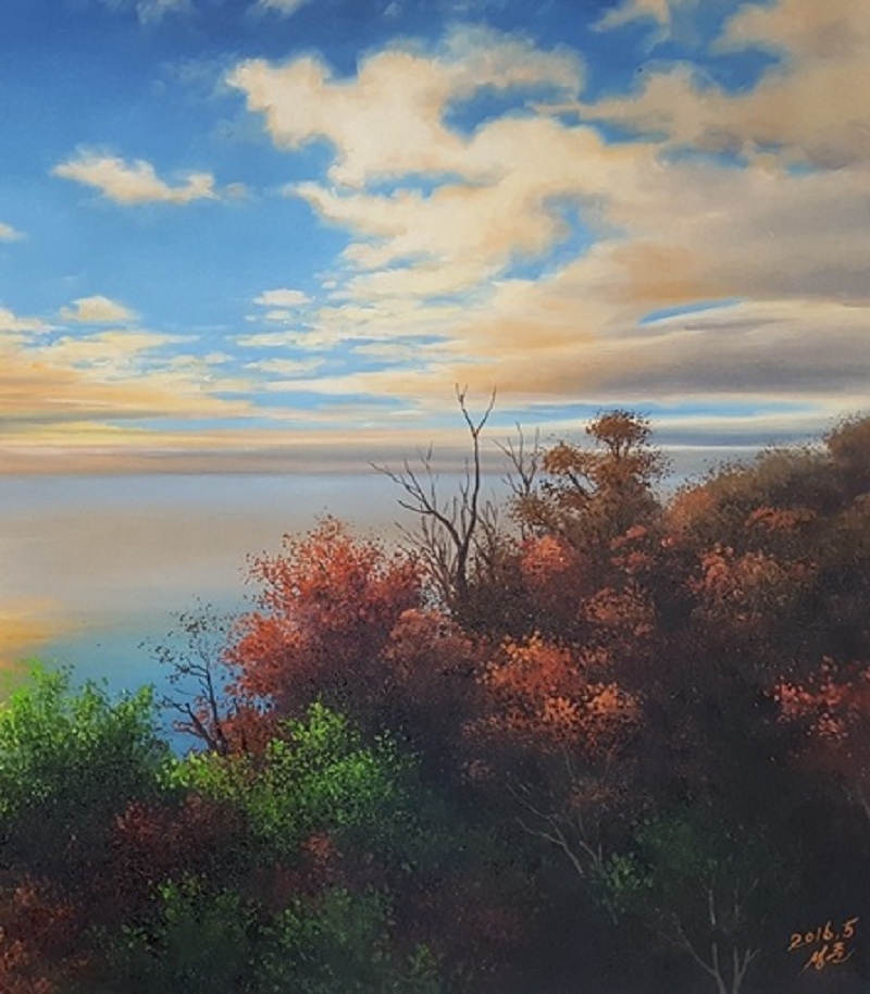 韩成俊 一级画家 1969年出生于朝鲜平壤市,1996年毕业于平壤美术大学,现任白虎美术创作社画家。代表作《山谷的秋天》。