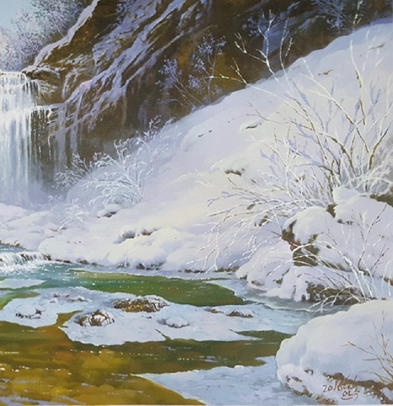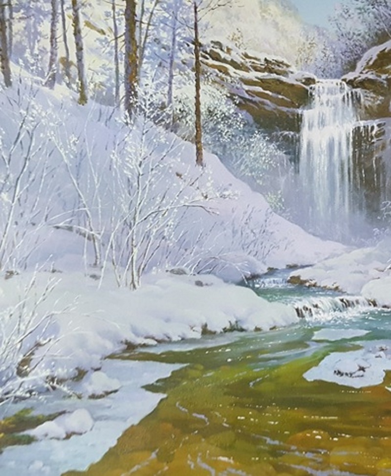 DQYCX75 一级画家 安秀《冬天的瀑布》55*90cm