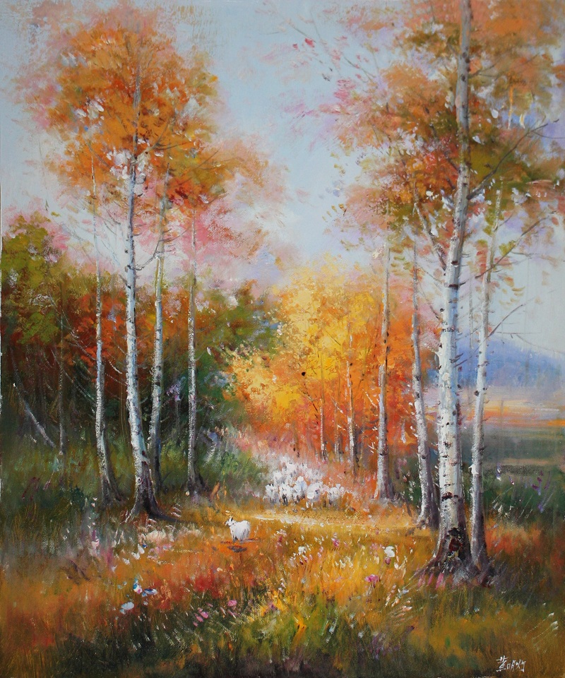 CCLNYY58 黄明灯《秋色白桦》福州师范大学 50*60cm