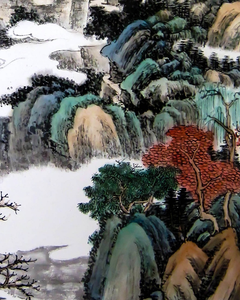 袭元人“四大家”和清代“四王”画风。其书法兼备历代大家诸体,书画自如透神韵,枯湿