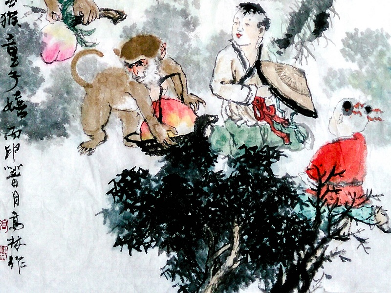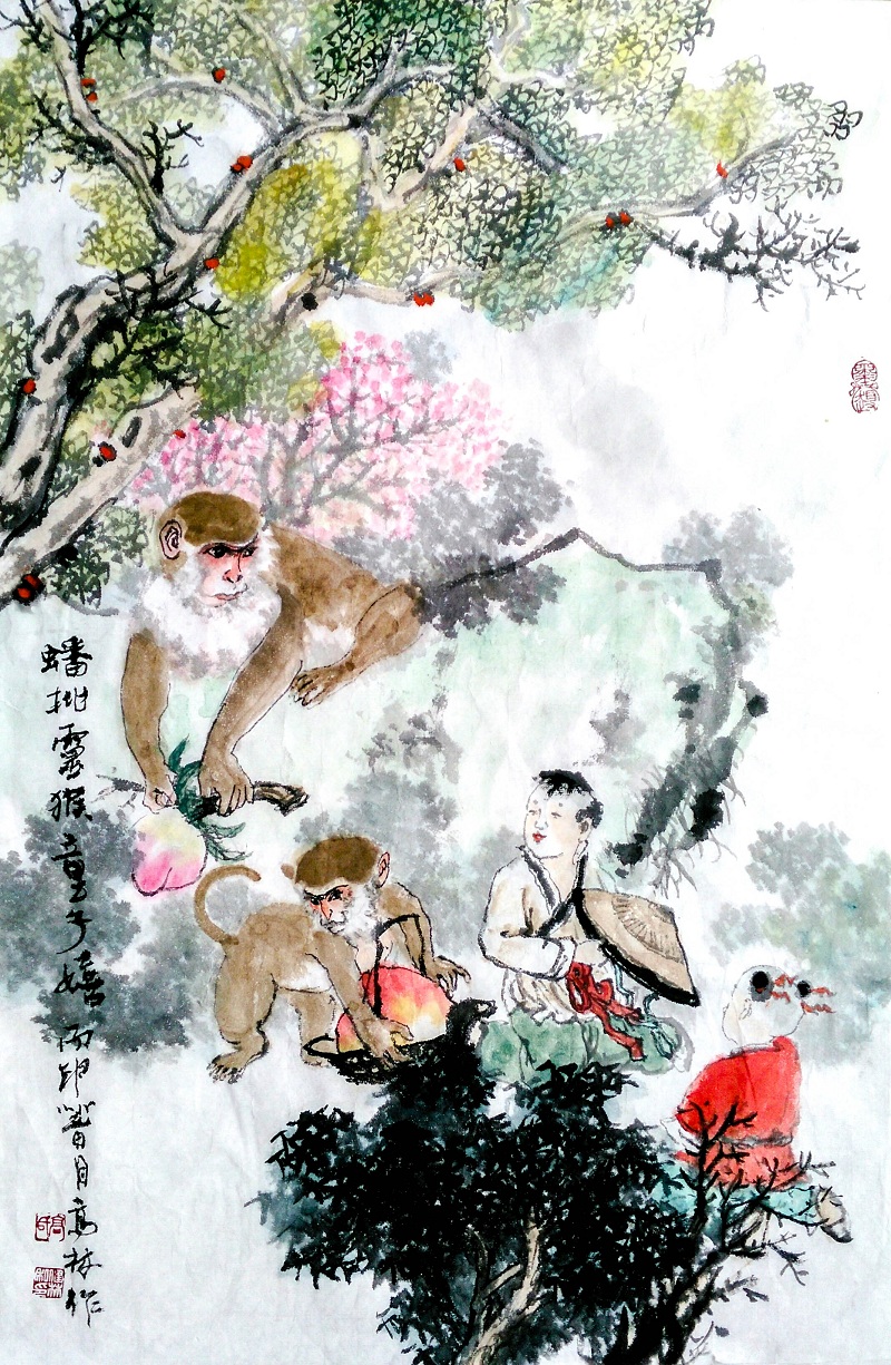GJLYG509 高健林《蟠桃灵猴童子嬉》70x45