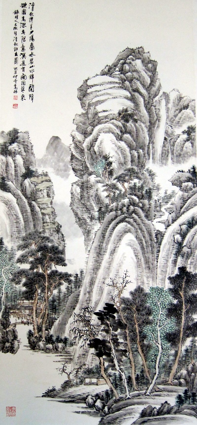 袭元人“四大家”和清代“四王”画风。其书法兼备历代大家诸体,书画自如透神韵,枯湿