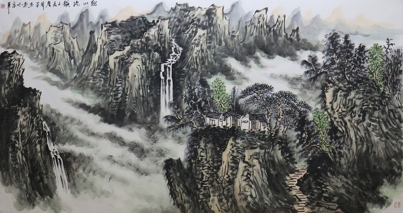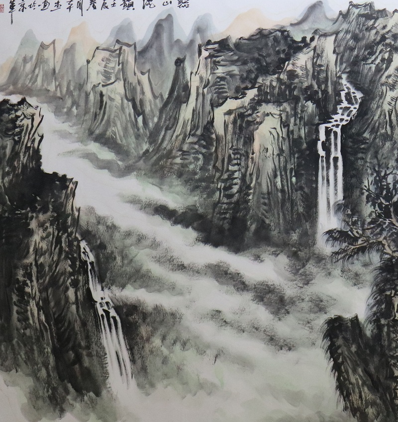 GYTYG343 王本杰《溪山流韵》六尺 可带画家合影 97x68