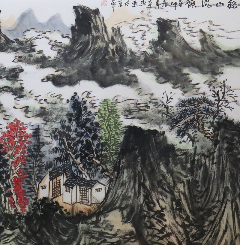 GYTYG345 王本杰《溪山流韵》六尺 可带画家合影 96X178