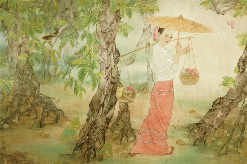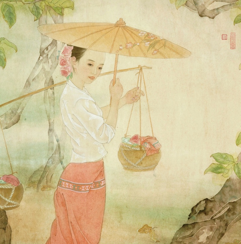 GYTYG384 刘延庆《赶摆归来》2012 工笔纸本设色 90×160cm