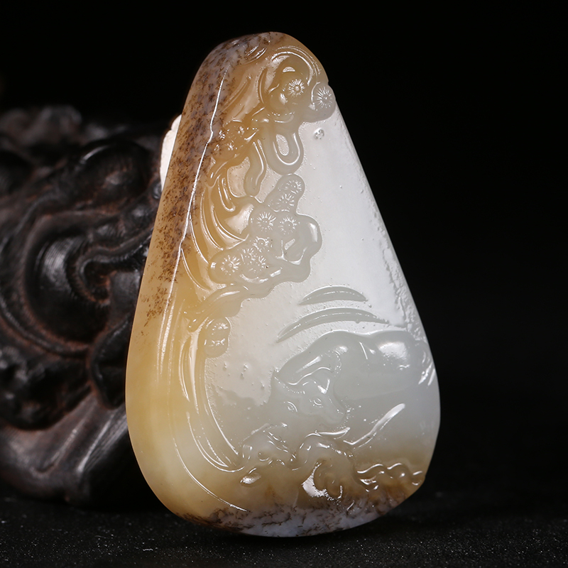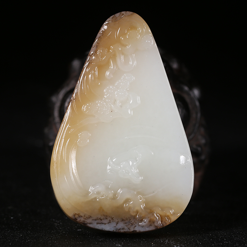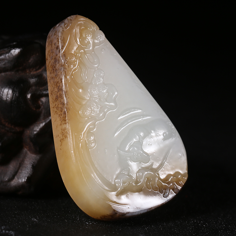 SDYH4 和田玉糖白羊脂玉挂件 扭转乾坤 30.64克