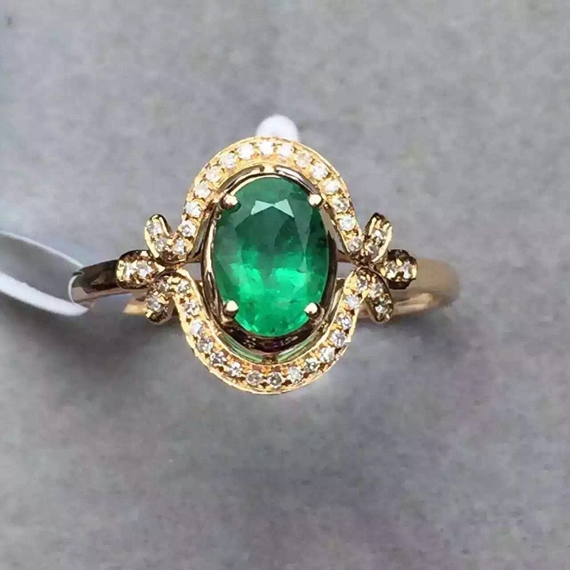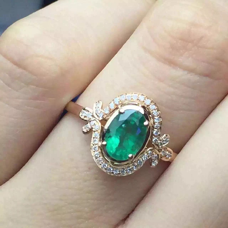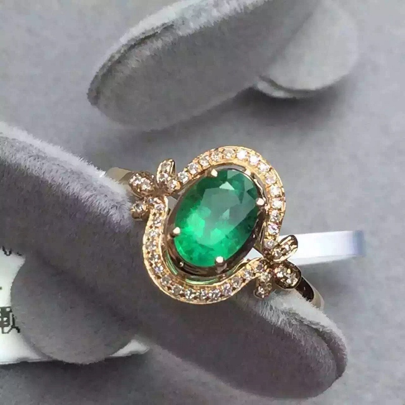 18k金镶祖母绿 金重1.49g 42颗钻石 尺寸5x7