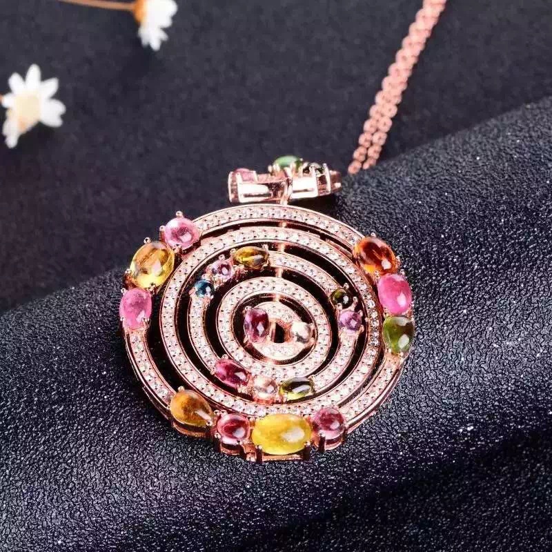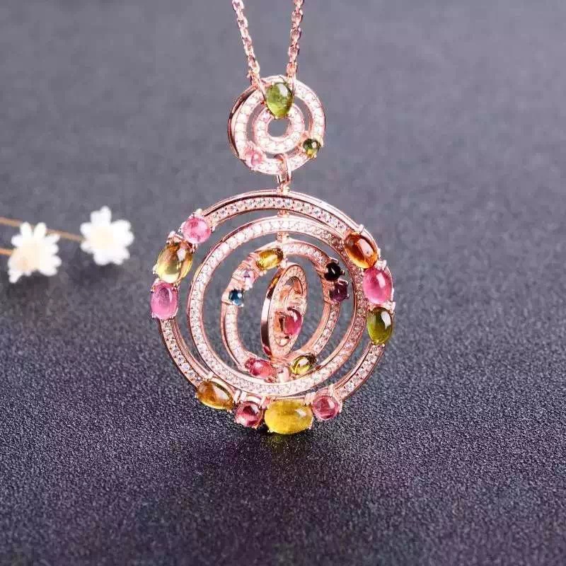HTWHYZB16 天然碧玺吊坠 带国检证书