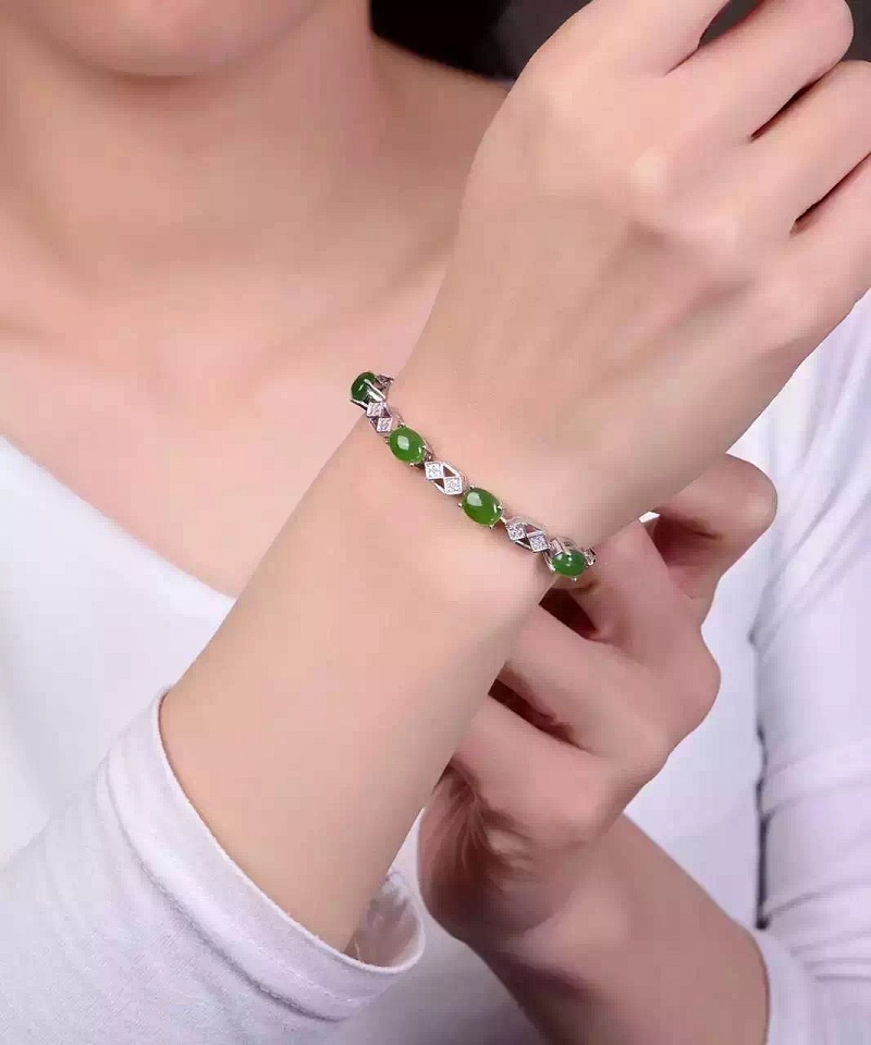 HTWHYZB19 天然和田碧玉手链 带国检证书
