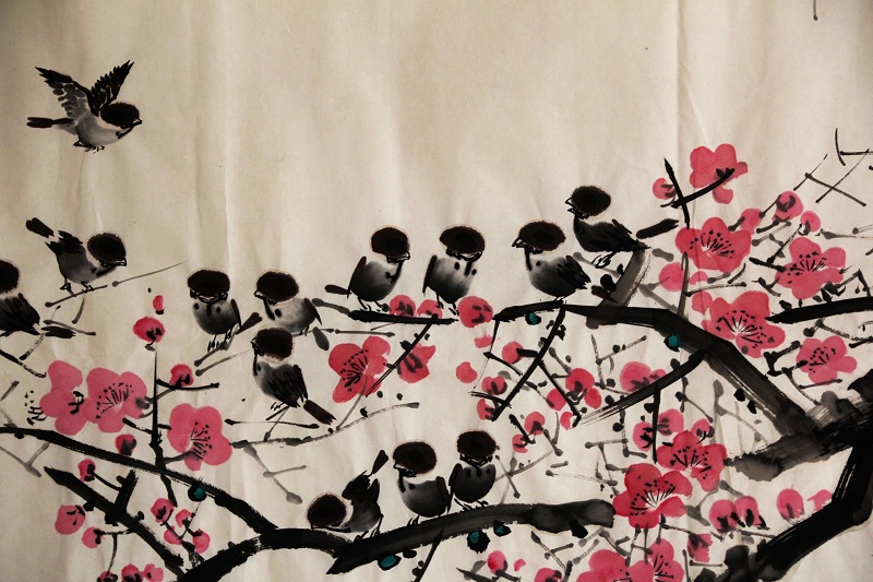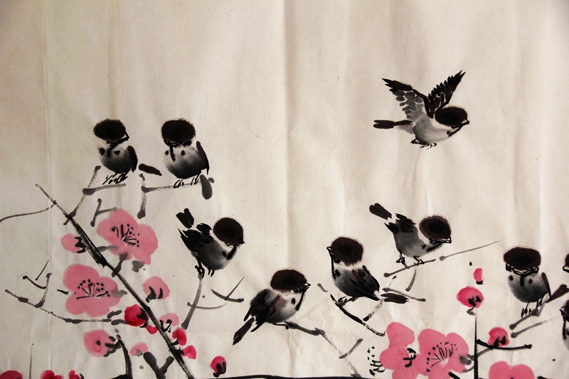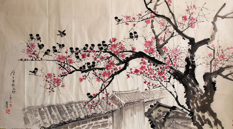 JSRHYCX126 崔成龙(人民艺术家)《桃红与麻雀》180*96