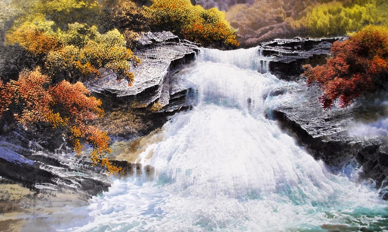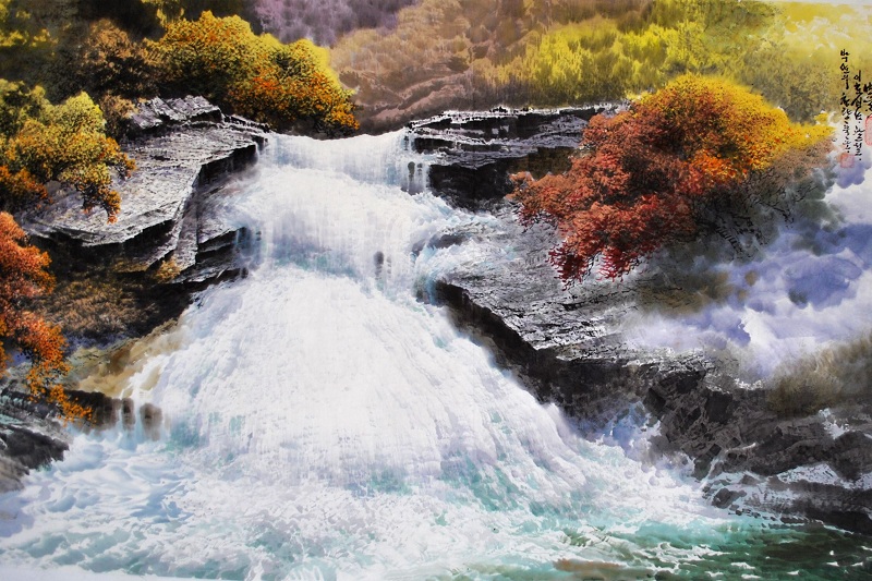 JSRHYCX129 房仁秀(功勋艺术家)《大同江的傍晚》180*98