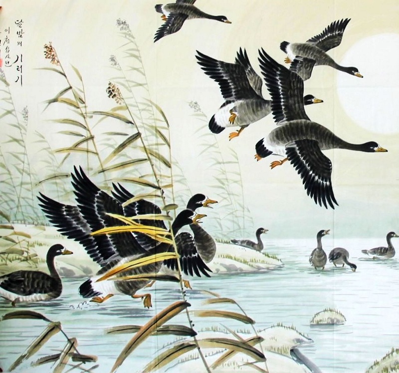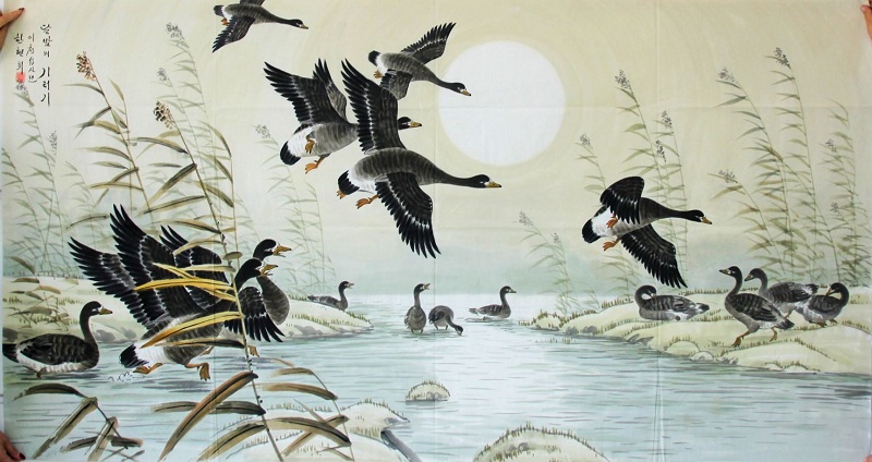 JSRHYCX143 韩宪基(功勋艺术家)5《芦苇丛中雁》180*98