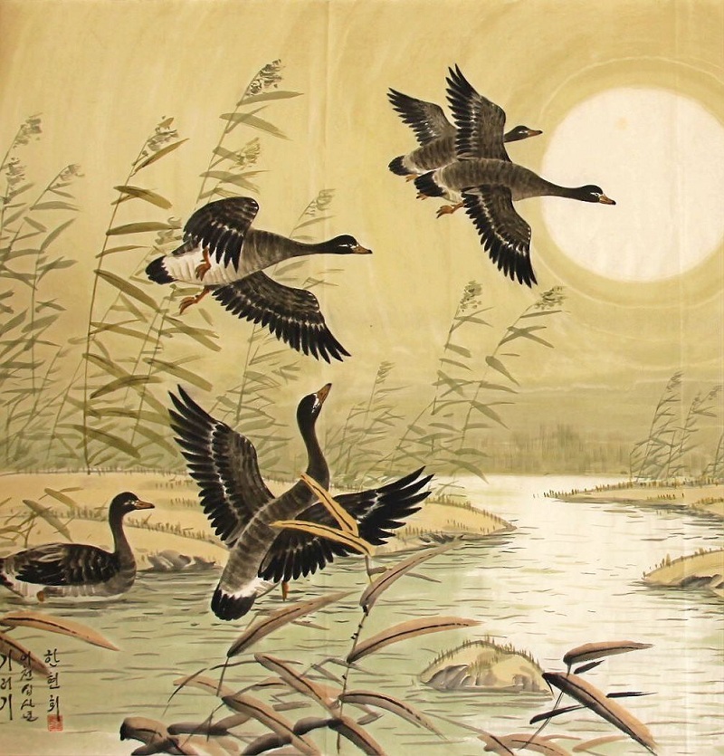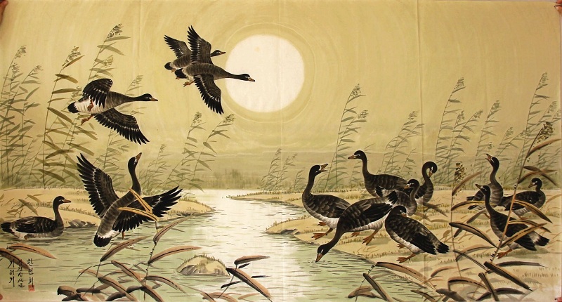 JSRHYCX152 韩宪基(功勋艺术家)7《夕阳下的雁》178*95