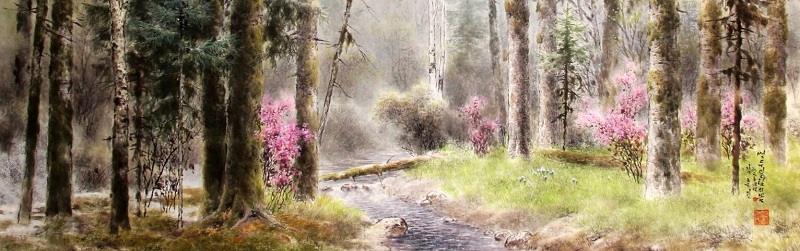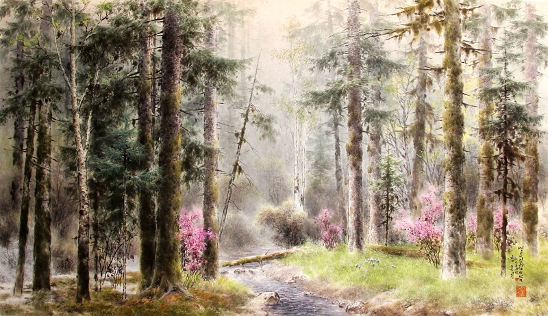 JSRHYCX215 金春田(人民艺术家)2004年《白头山密林的春天》143*83