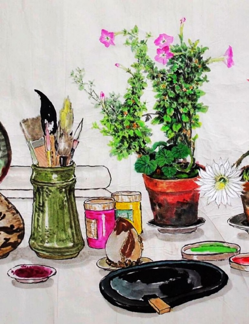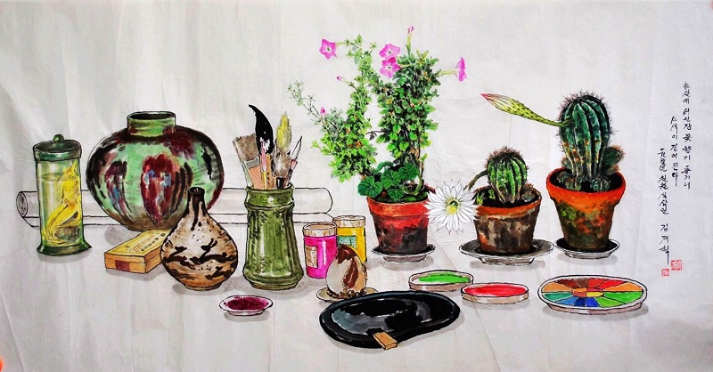 JSRHYCX220 金基鹤(功勋艺术家)《画室的花香》133*67
