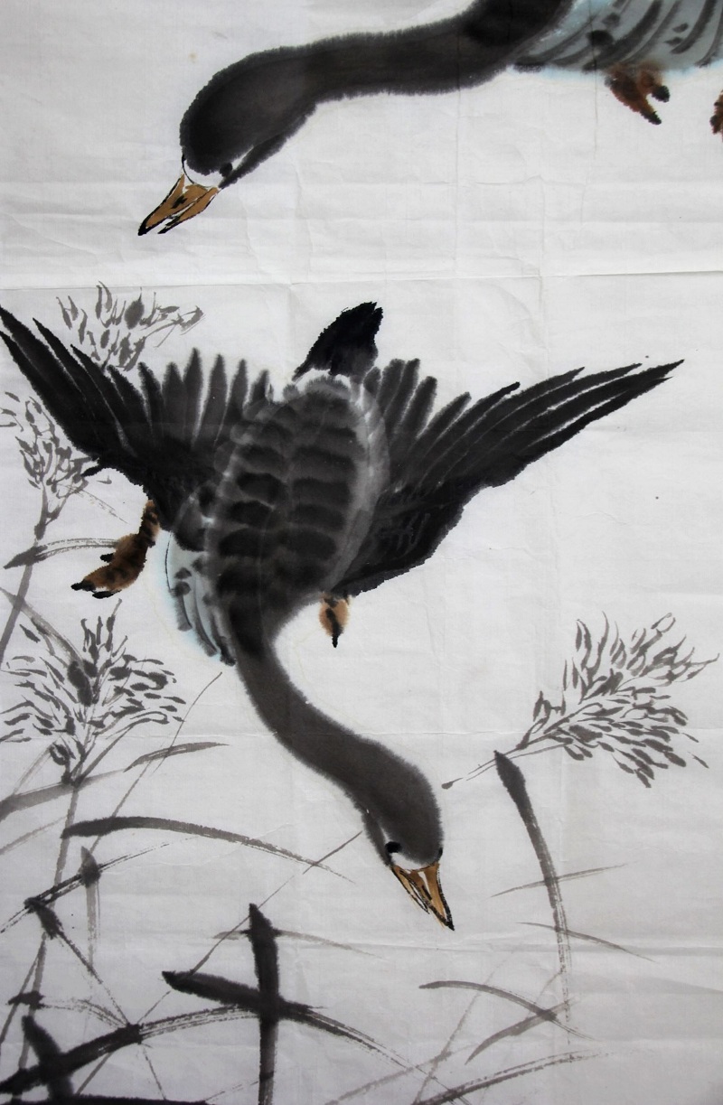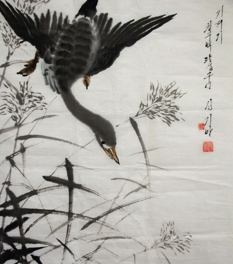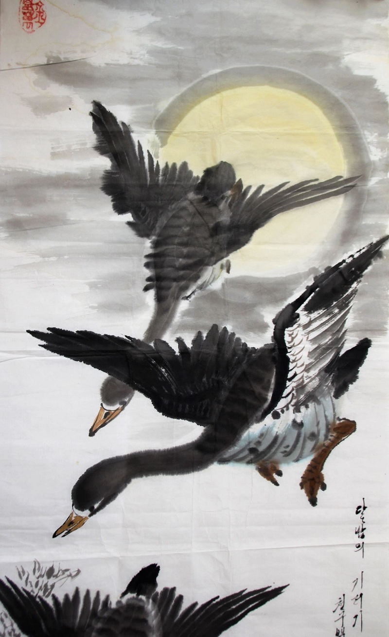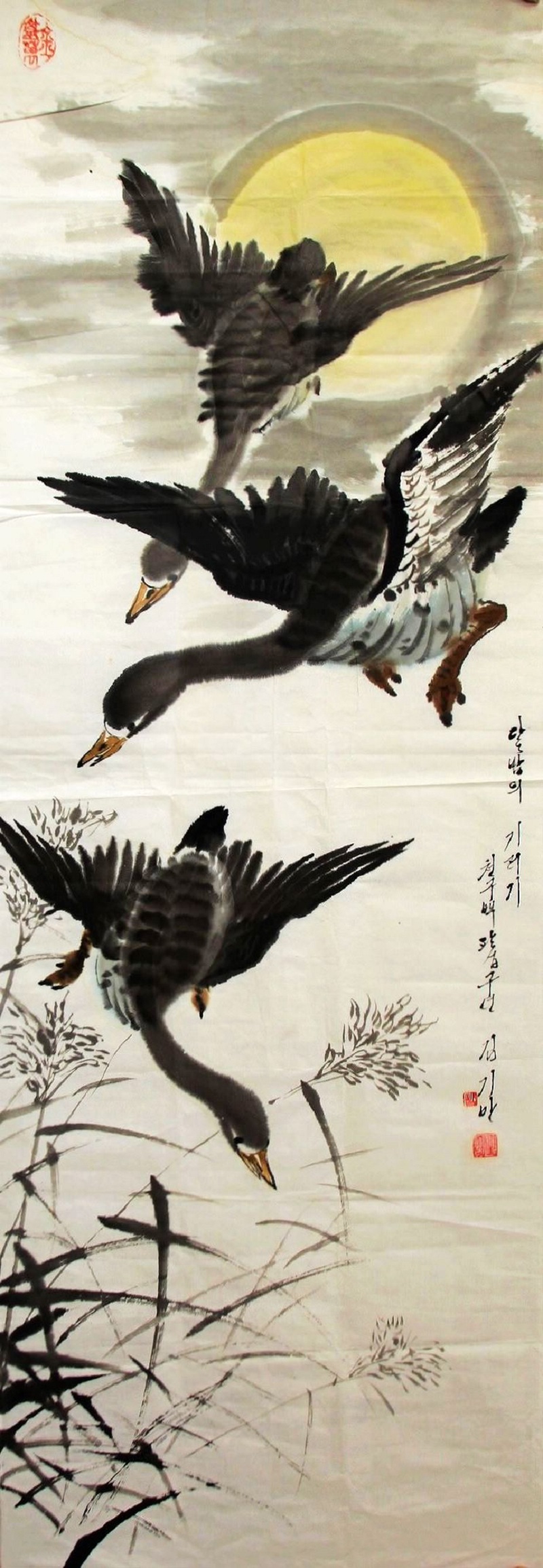 JSRHYCX228 金基万(已故功勋艺术家)《月亮下的大雁》110*38
