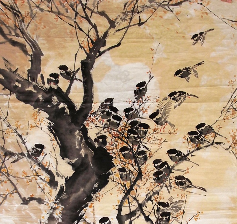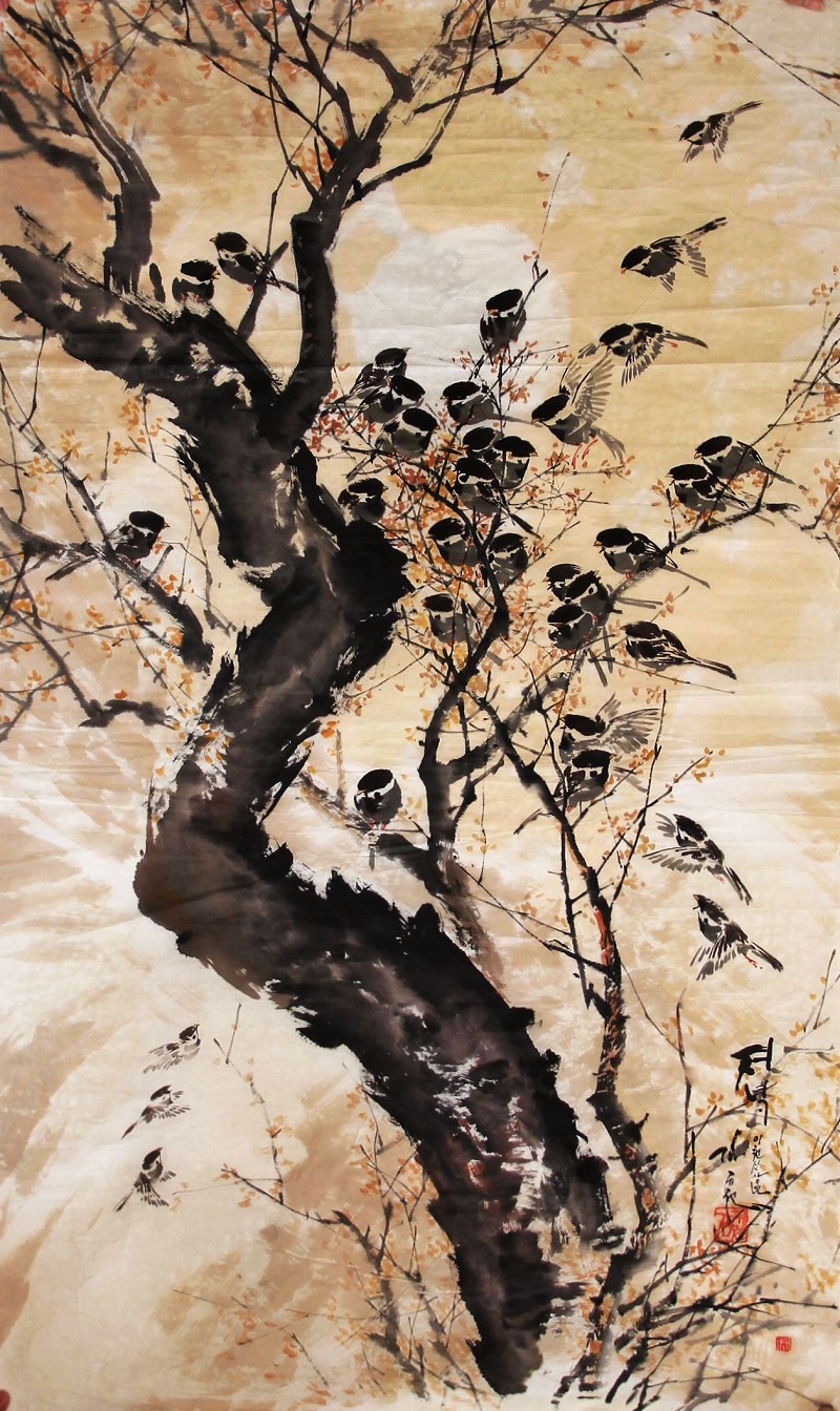 JSRHYCX236 金奎权(功勋艺术家)《夕阳下的麻雀》122*73