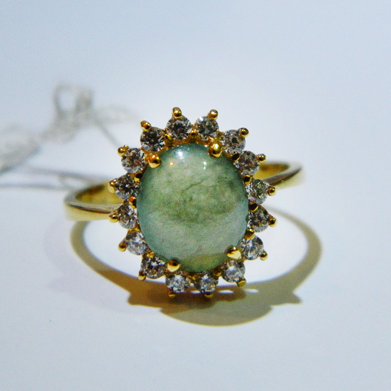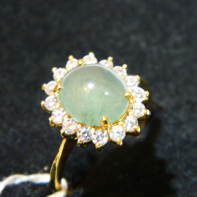 18k金镶嵌冰种翡翠戒指女天然玉石戒指 天然钻石 翡翠