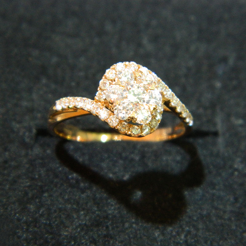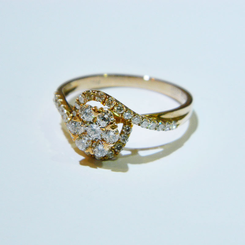 18K彩金镶天然钻石戒指 群镶显钻款 钻石大小0.492克拉/0.103克拉
