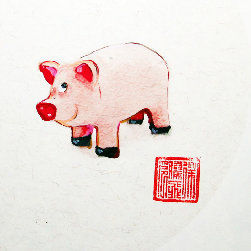 徐腾飞  《两只小猪》33*33cm  宣纸设色 2016年
