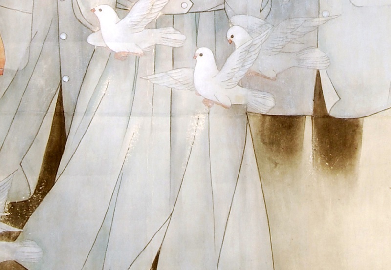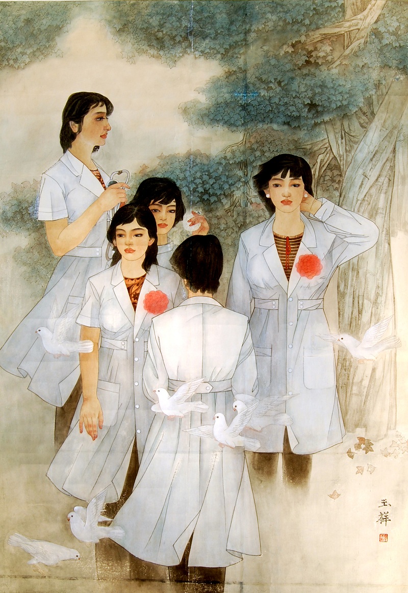 早在山东老家的时候,他就跟着一些师傅学过工笔画,那是上世纪70年代初,他刚刚高中毕业。当时,在内地的一些农村流行在橱柜、衣柜、影壁墙的玻璃上作画,画的大都是花鸟鱼虫、梅兰竹菊等,人们称之为“玻璃画”。其实“玻璃画”的很多技法就是工笔画的另一种 “翻版”。从小喜欢画画的林玉祥开始学习“玻璃画”。因为画得很出色,他被请到黑龙江、沈阳等地的农民家里去画 “玻璃画”。他先后去了三次东北。