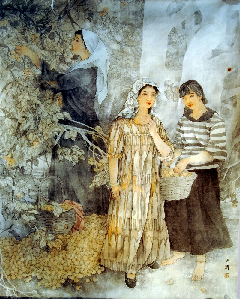 林玉祥是谦虚的,从和他的对话中,感觉到一种坚持的精神,一种不管遇到什么事都不会放弃自己选择的创作之路。看他的工笔绘画,大都是人物,回眸一笑的塔吉克族姑娘、曼妙舞动的维吾尔族少女、吐峪沟的风景、草原上的奔马……会带着你一起进入工笔画的领域,在他的工笔画中领略到新疆的风土人情,那美丽的新疆少女,那飘着果香的美丽地方……。