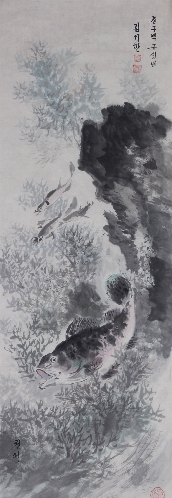 朝鮮四大畫家(鄭昶謨、鮮于榮、金相稷、金基萬)之一的金基萬,是韓國畫家金基昌的弟弟。 1929年5月9日出生于首爾市鍾路區雲尼洞。金基萬4歲時母親去世,與長兄金基昌相依爲命。 1943年在‘校洞普通公立學校’讀書,小時候看到哥哥喜歡畫畫,金基萬也産生了畫畫的萌芽。1949年‘京畿公立高等中學’畢業,學窗時期接受李純鍾、吉鎭燮等人的美術指導,他的作品在展覽會上出現,後進入首爾私立美術研究所。 朝鮮戰爭爆發後,1951年加入人民軍,1956年在平壤美術大學朝鮮畫系學習,1960年平壤美術大學朝鮮畫系畢業。 1960~1965平壤美術大學教員,以後活躍于朝鮮民俗博物館、鐵道美術創作社等美術機關從事美術創作事業。作品有:《金剛山》、《閑山島大戰》、《洪景來農民暴動》、《月夜大雁》、《麻雀》、《黃玉蘭》、《初冬》、《月夜白梅》、《闕魚圖》等1500余幅主題畫、風景畫、花鳥畫等… 2000年12月,北南離散家族相逢時金基萬訪問了韓國,與病榻上的哥哥金基昌相見,並互相交換了各自的作品。 2004年6月首爾‘朝鮮4大畫家展、2004年10月朝鮮畫家作品展、2005年3月朝鮮畫家‘故金基萬遺作展’,韓國舉辦的數次美展中他的作品得以大力宣傳,金基萬的名聲與作品在韓國家喻戶曉。
