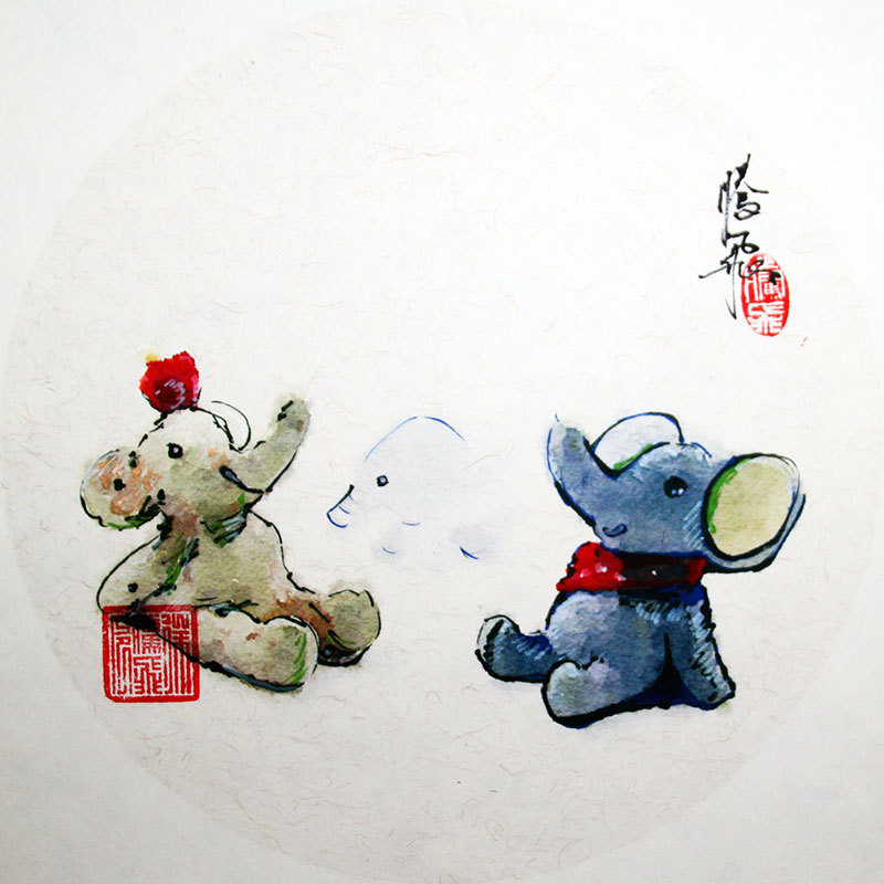 徐腾飞  《三只小象》33*33cm  宣纸设色 2016年