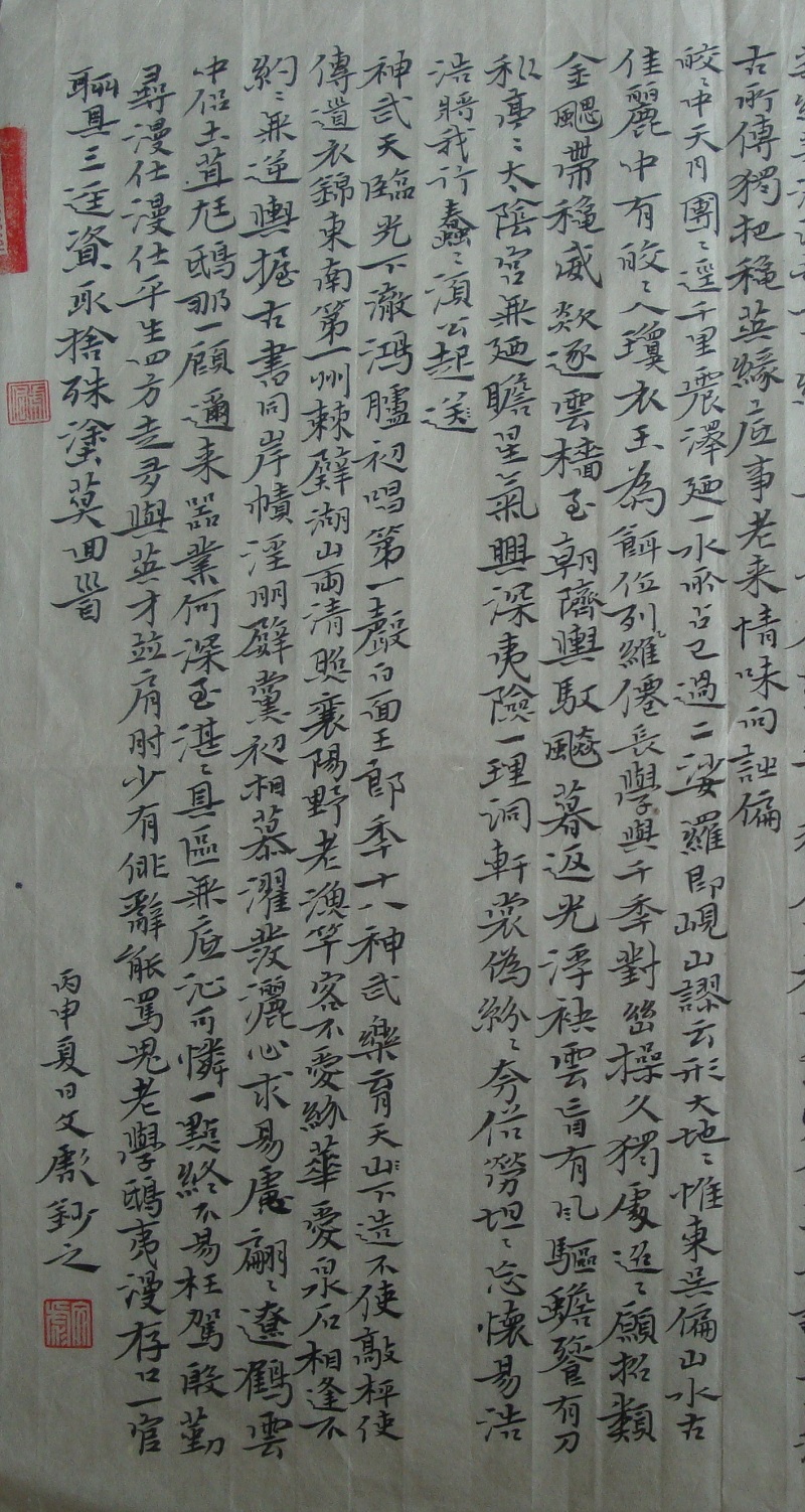 2013-8行草书法获上海市“翰墨书写人生”市民大赛入展奖