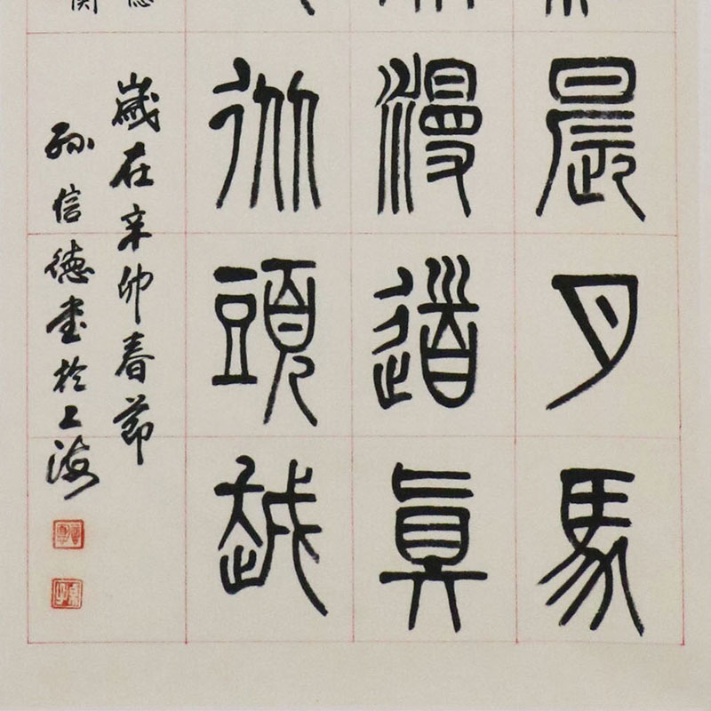孙信德,字德康,号达人。一九三四年生于浙江奉化,现为中国书法家协会会员,联邦德国曼汉姆市东亚学院客座教授,上海百老德育讲师团副团长兼上海百老书画院执行院长。