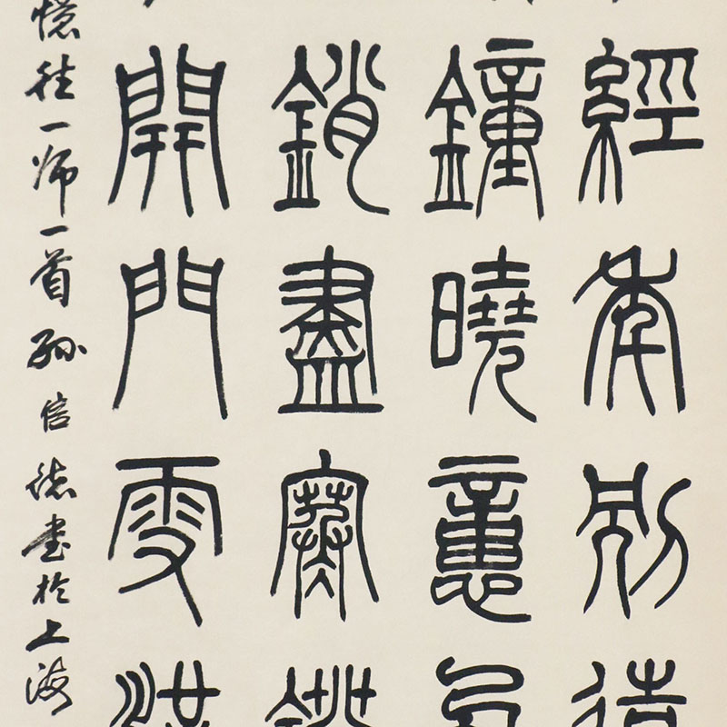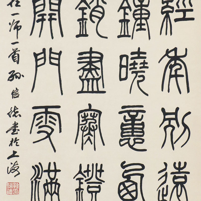 达人家境清贫,幼时失学,未及弱冠即远离故里到上海谋生。尚能温饱,便致力书法,专心求进,不问寒暑,孜孜不倦,深得各体结构之要决,尤精楷、行。楷法初学欧阳、参以智永千文、工整秀丽,极尽刚健婀娜之致;隶书学乙瑛、礼器、得其遒劲飘逸之妙,步入中年师法邓石如,益复浑厚,其余对汉魏唐宋各家无不涉及,特别对近代书法名人于佑任情有独钟,集其精神而自成一家。