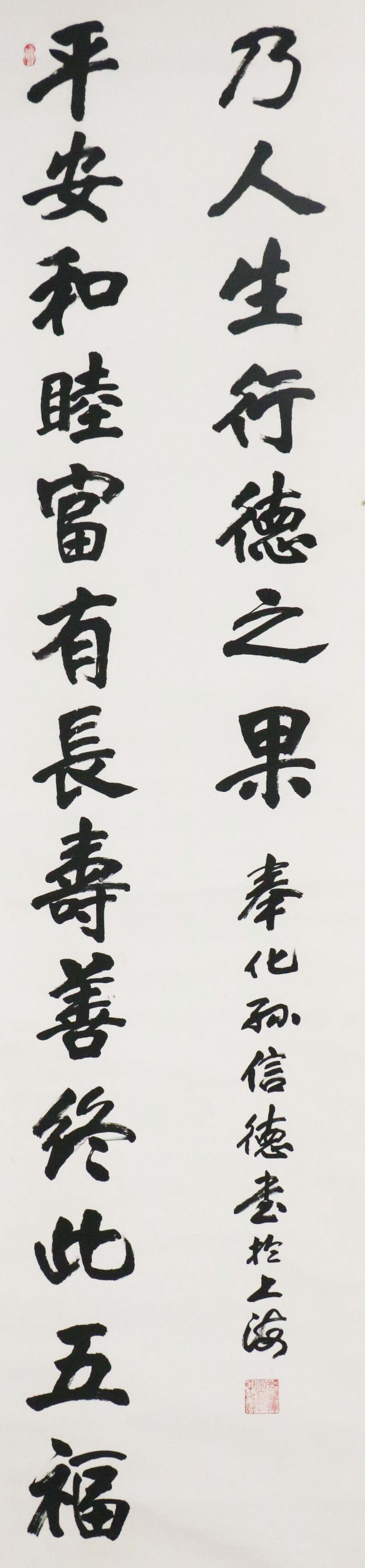 孙信德,字德康,号达人。一九三四年生于浙江奉化,现为中国书法家协会会员,联邦德国曼汉姆市东亚学院客座教授,上海百老德育讲师团副团长兼上海百老书画院执行院长。