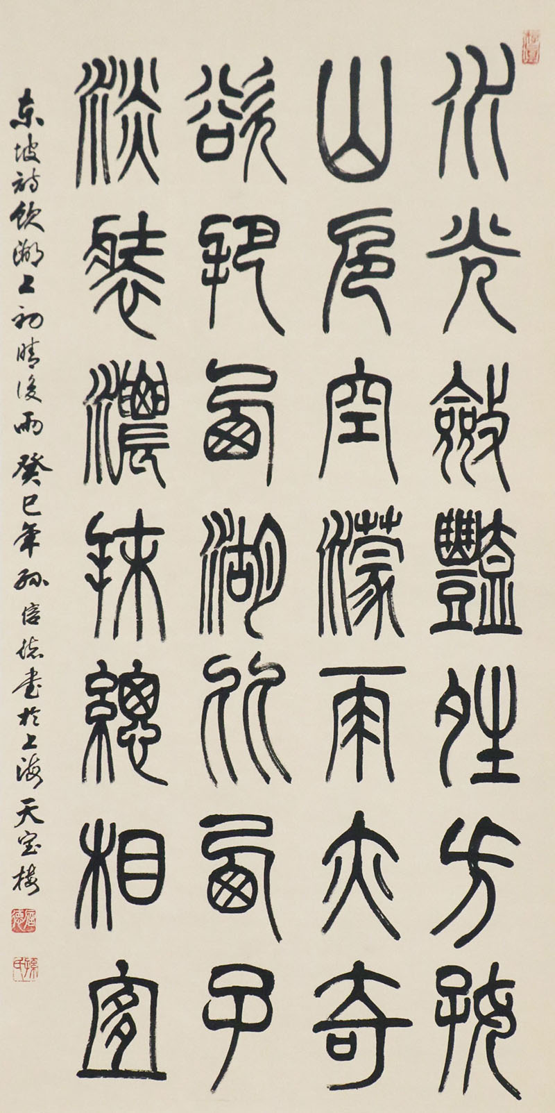 达人家境清贫,幼时失学,未及弱冠即远离故里到上海谋生。尚能温饱,便致力书法,专心求进,不问寒暑,孜孜不倦,深得各体结构之要决,尤精楷、行。楷法初学欧阳、参以智永千文、工整秀丽,极尽刚健婀娜之致;隶书学乙瑛、礼器、得其遒劲飘逸之妙,步入中年师法邓石如,益复浑厚,其余对汉魏唐宋各家无不涉及,特别对近代书法名人于佑任情有独钟,集其精神而自成一家。唐人有诗云:“几度见诗诗尽好,及观标格胜于诗。”文如其人,书亦如之。达人性情淳厚,助人为乐,尊贤敬老,奖掖后进,不遗余力,人且以此多之。其作品曾应邀去新加坡、日本、德国、台湾和国内的江苏美术馆、上海美术馆等地展览,颇有影响。为了书法的普及,上海书画出版社约他编写—“怎样写楷书”。接着又约他书写—“金训华日记”大中楷书字帖,五次再版,印数达180万册,风行海内外,学者称便。还应上海电视台之请,讲授楷法,甚得好评。国内名胜古迹邀其题字者接踵。