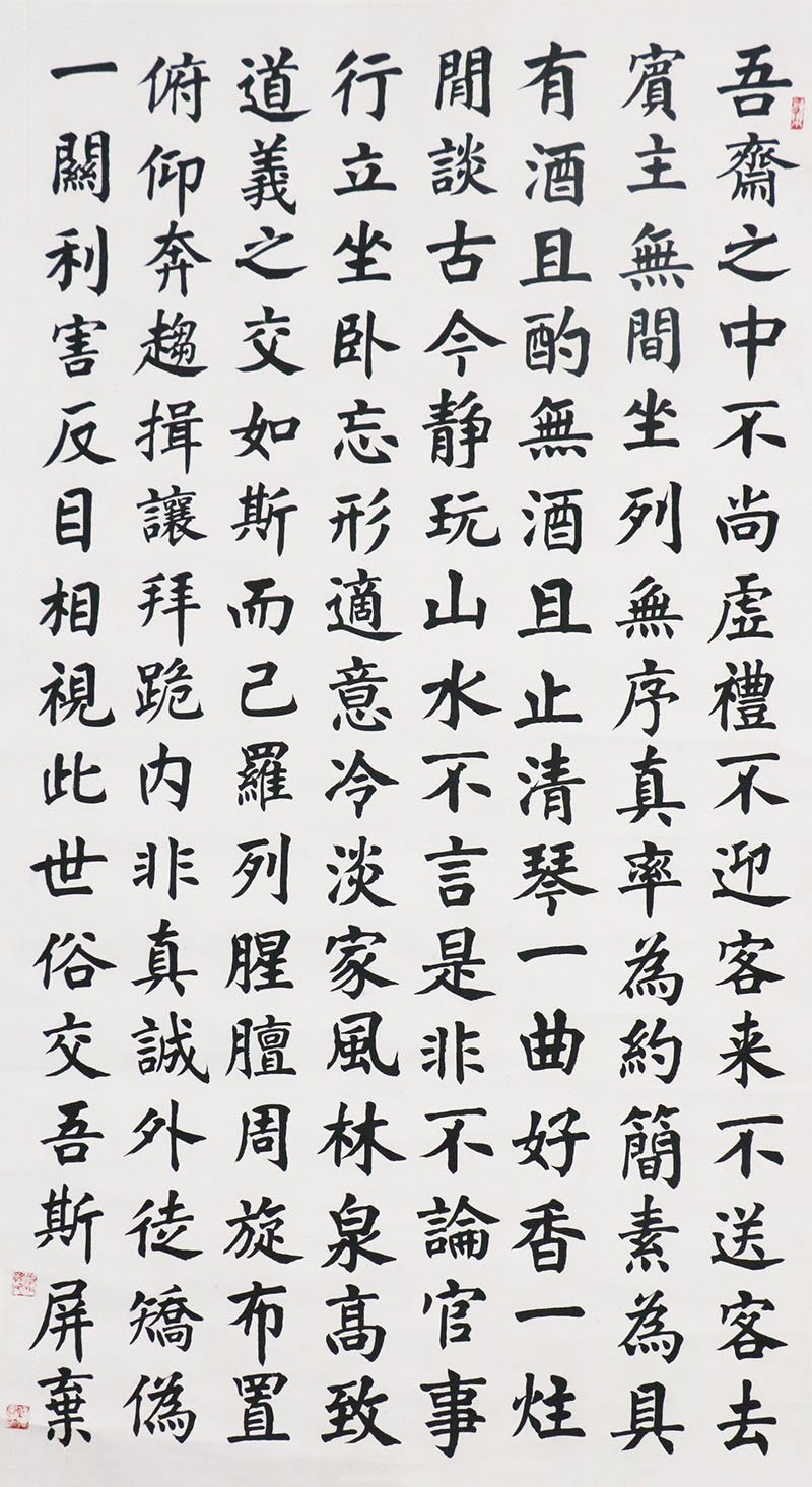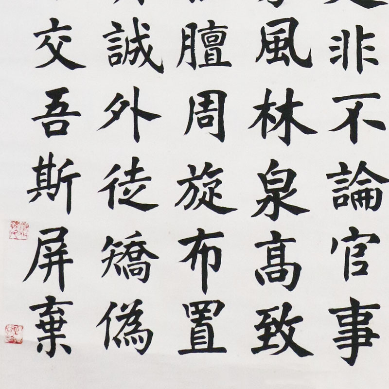 达人家境清贫,幼时失学,未及弱冠即远离故里到上海谋生。尚能温饱,便致力书法,专心求进,不问寒暑,孜孜不倦,深得各体结构之要决,尤精楷、行。楷法初学欧阳、参以智永千文、工整秀丽,极尽刚健婀娜之致;隶书学乙瑛、礼器、得其遒劲飘逸之妙,步入中年师法邓石如,益复浑厚,其余对汉魏唐宋各家无不涉及,特别对近代书法名人于佑任情有独钟,集其精神而自成一家。唐人有诗云:“几度见诗诗尽好,及观标格胜于诗。”文如其人,书亦如之。达人性情淳厚,助人为乐,尊贤敬老,奖掖后进,不遗余力,人且以此多之。其作品曾应邀去新加坡、日本、德国、台湾和国内的江苏美术馆、上海美术馆等地展览,颇有影响。为了书法的普及,上海书画出版社约他编写—“怎样写楷书”。接着又约他书写—“金训华日记”大中楷书字帖,五次再版,印数达180万册,风行海内外,学者称便。还应上海电视台之请,讲授楷法,甚得好评。国内名胜古迹邀其题字者接踵。