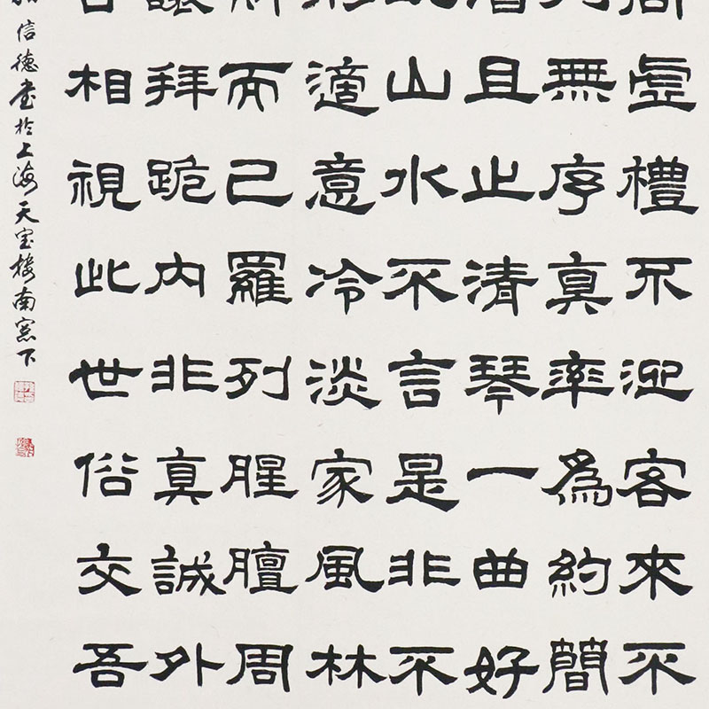 达人家境清贫,幼时失学,未及弱冠即远离故里到上海谋生。尚能温饱,便致力书法,专心求进,不问寒暑,孜孜不倦,深得各体结构之要决,尤精楷、行。楷法初学欧阳、参以智永千文、工整秀丽,极尽刚健婀娜之致;隶书学乙瑛、礼器、得其遒劲飘逸之妙,步入中年师法邓石如,益复浑厚,其余对汉魏唐宋各家无不涉及,特别对近代书法名人于佑任情有独钟,集其精神而自成一家。唐人有诗云:“几度见诗诗尽好,及观标格胜于诗。”文如其人,书亦如之。达人性情淳厚,助人为乐,尊贤敬老,奖掖后进,不遗余力,人且以此多之。其作品曾应邀去新加坡、日本、德国、台湾和国内的江苏美术馆、上海美术馆等地展览,颇有影响。为了书法的普及,上海书画出版社约他编写—“怎样写楷书”。接着又约他书写—“金训华日记”大中楷书字帖,五次再版,印数达180万册,风行海内外,学者称便。还应上海电视台之请,讲授楷法,甚得好评。国内名胜古迹邀其题字者接踵。