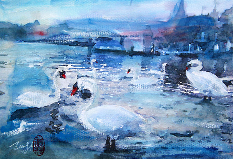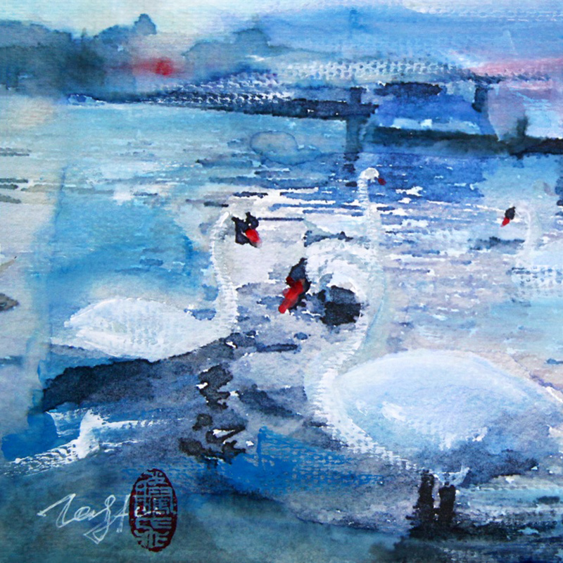 徐腾飞 《天鹅湖-瑞斯》 19.5x27cm 纸本丙烯 2015