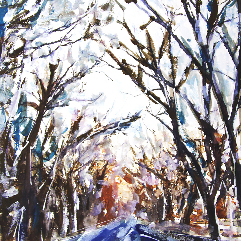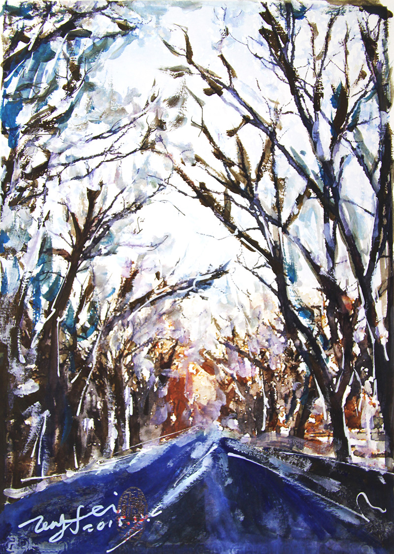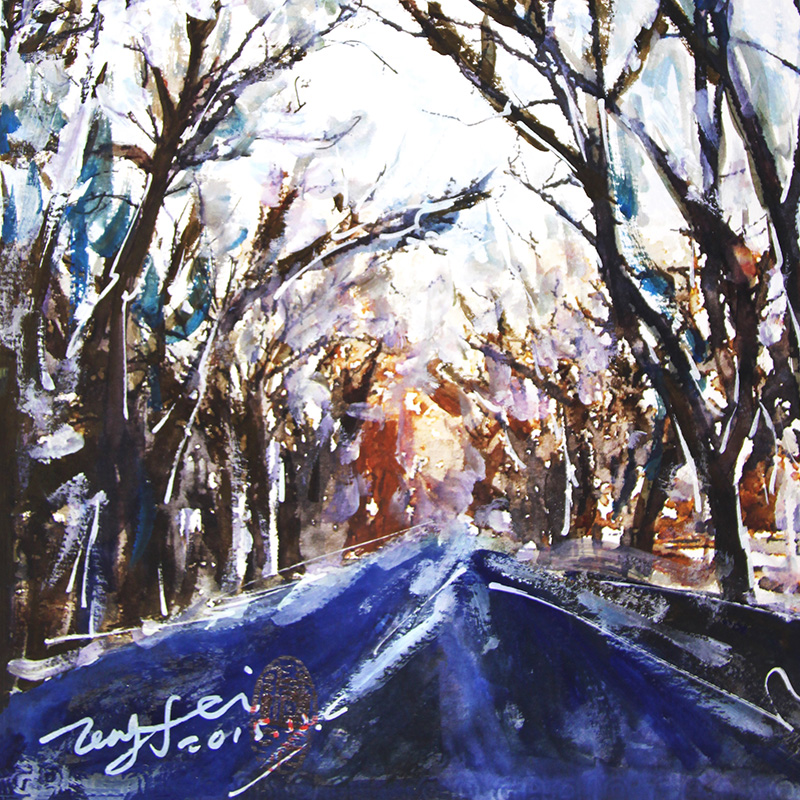 徐腾飞 《落日-机场辅路》 19.5x27cm 纸本丙烯 2015
