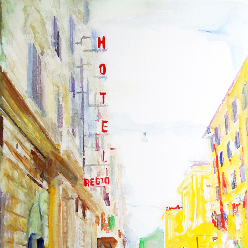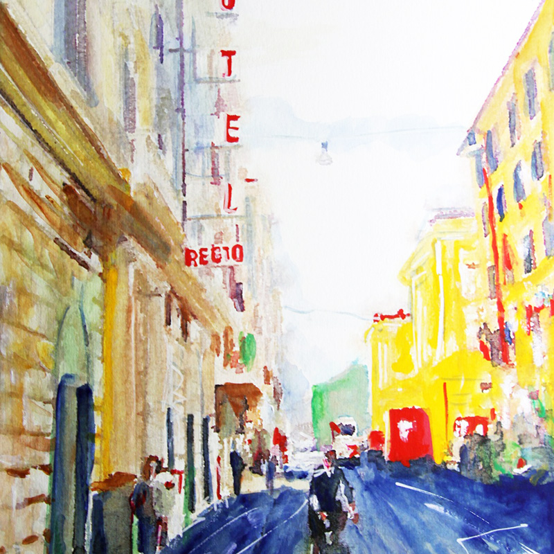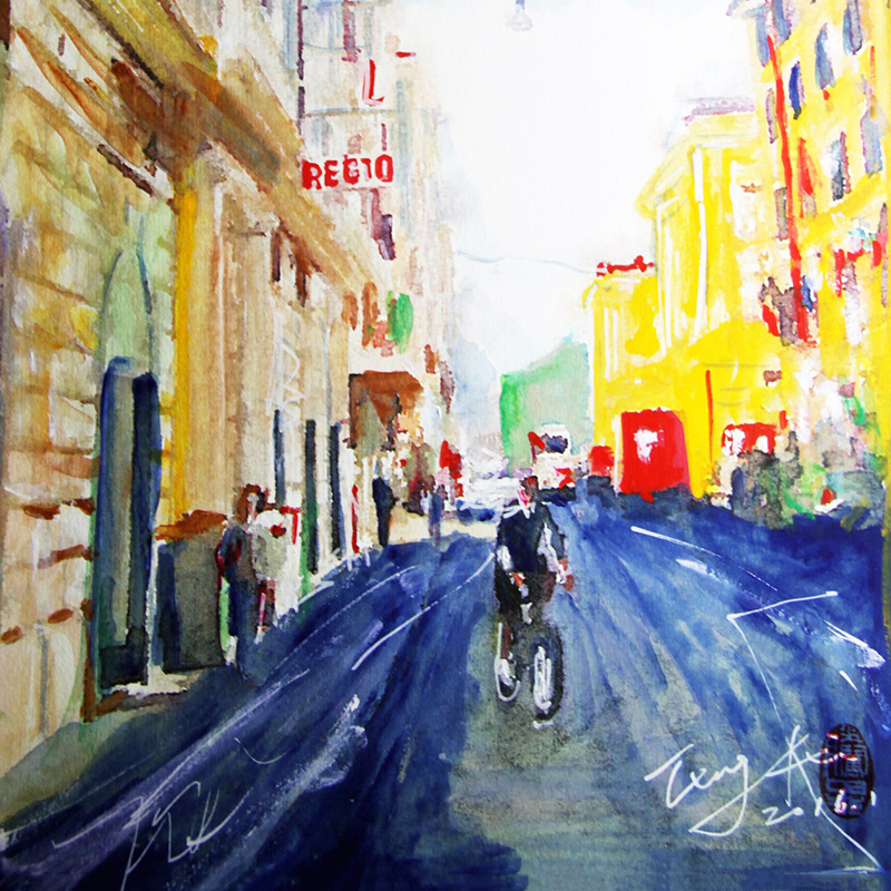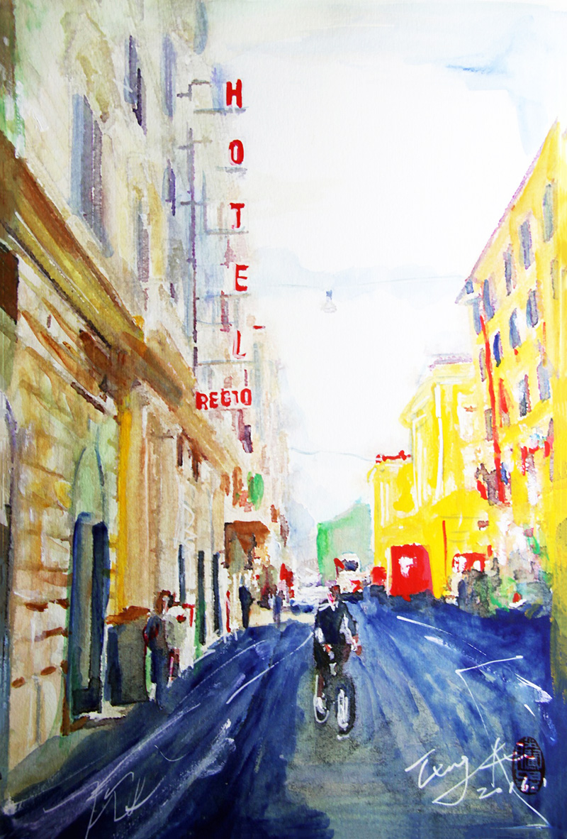 徐腾飞《罗马街景之二》 27x39cm 纸本丙烯 2015